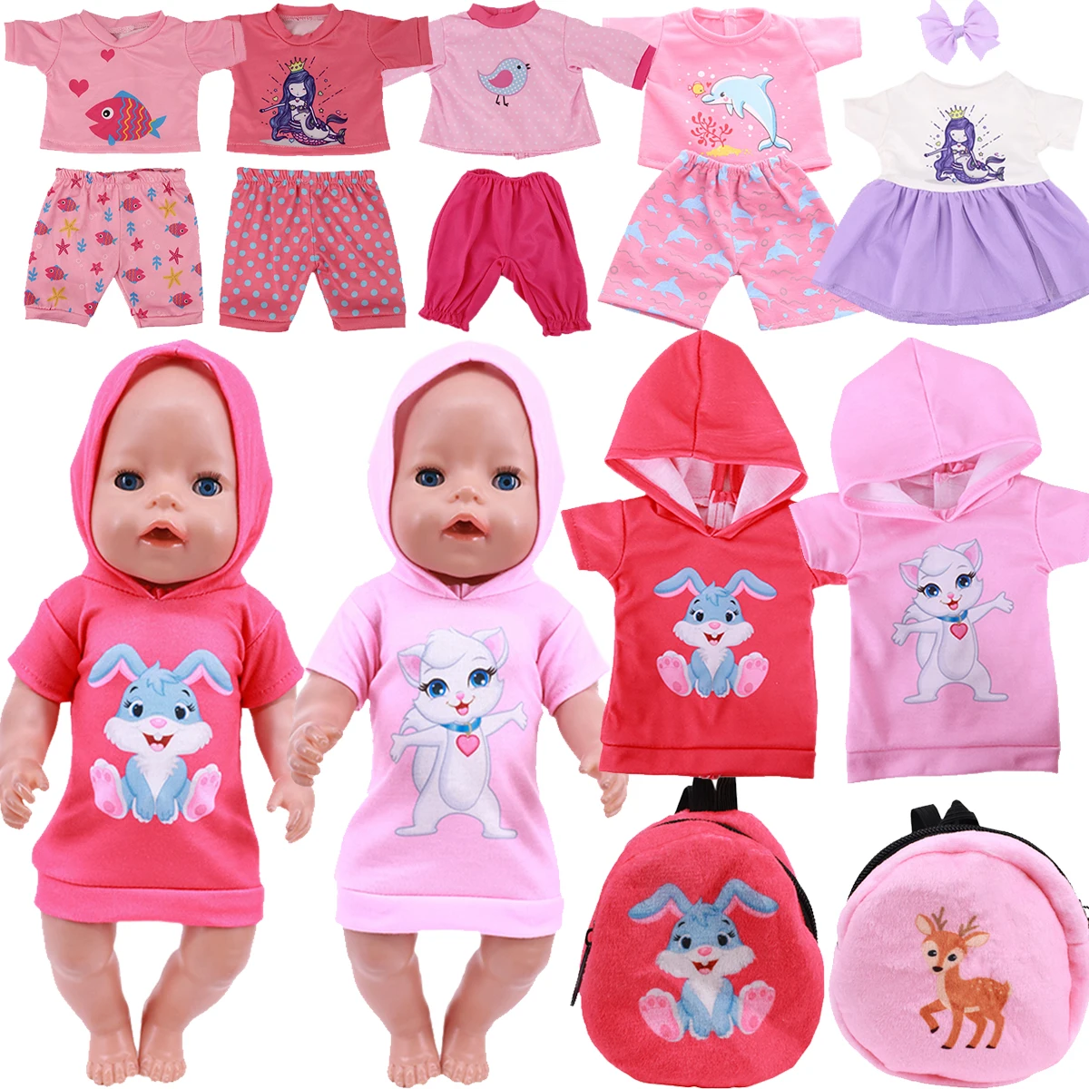 Натуралистичные куклы розовый серии милый кролик одежда сумки Fit16-18 дюймов с капюшонами в американском и 43 см для ухода за ребенком для мам реборн Новое новорожденная кукла нашего поколения игрушка