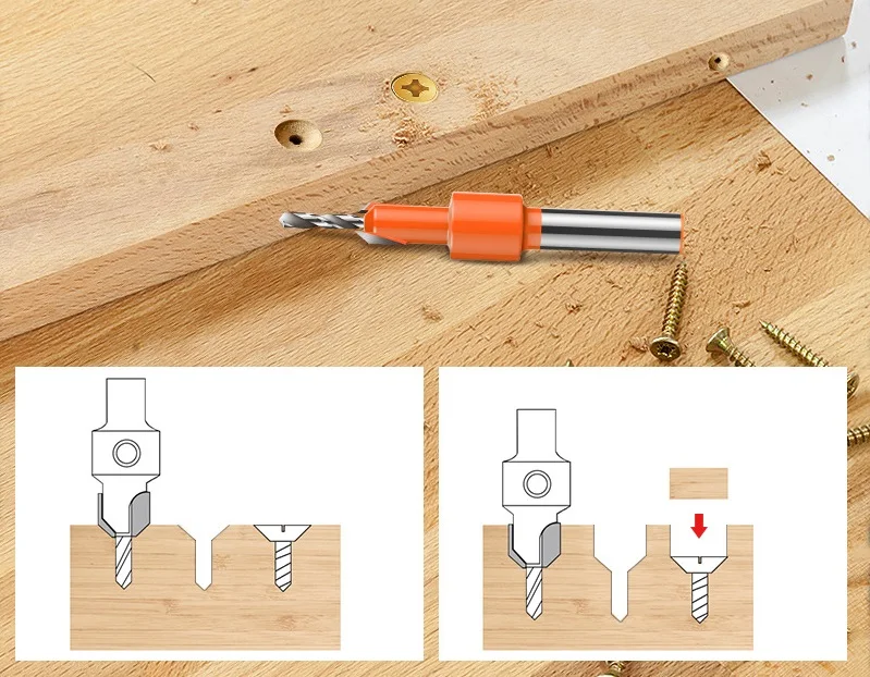 * Сверло зенковки Самонарезающий винт конический Жесткий сплав деревообрабатывающий инструмент