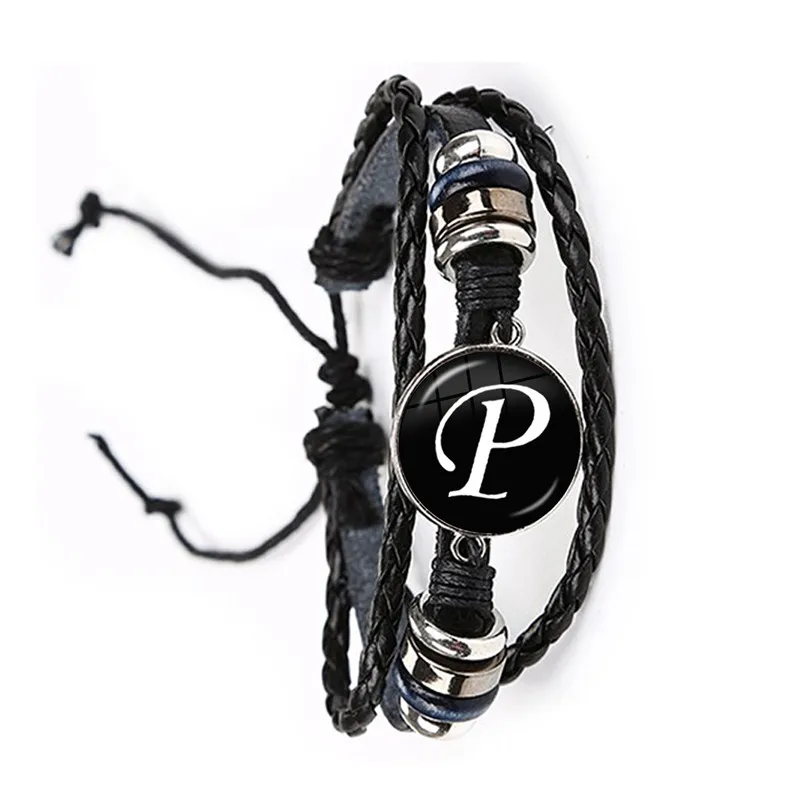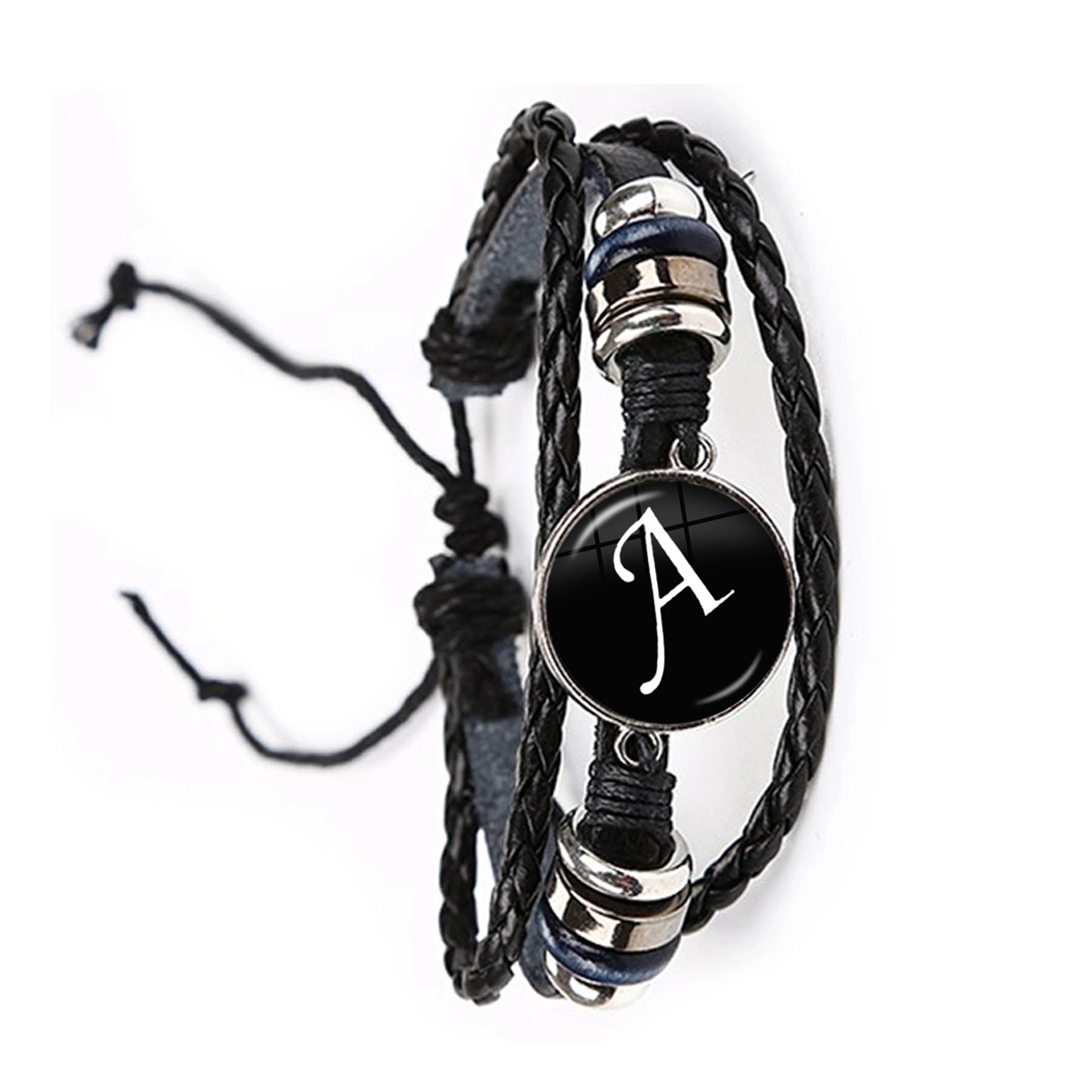 Браслет кожаный унисекс, 26 букв, с именем, регулируемый, A-Z