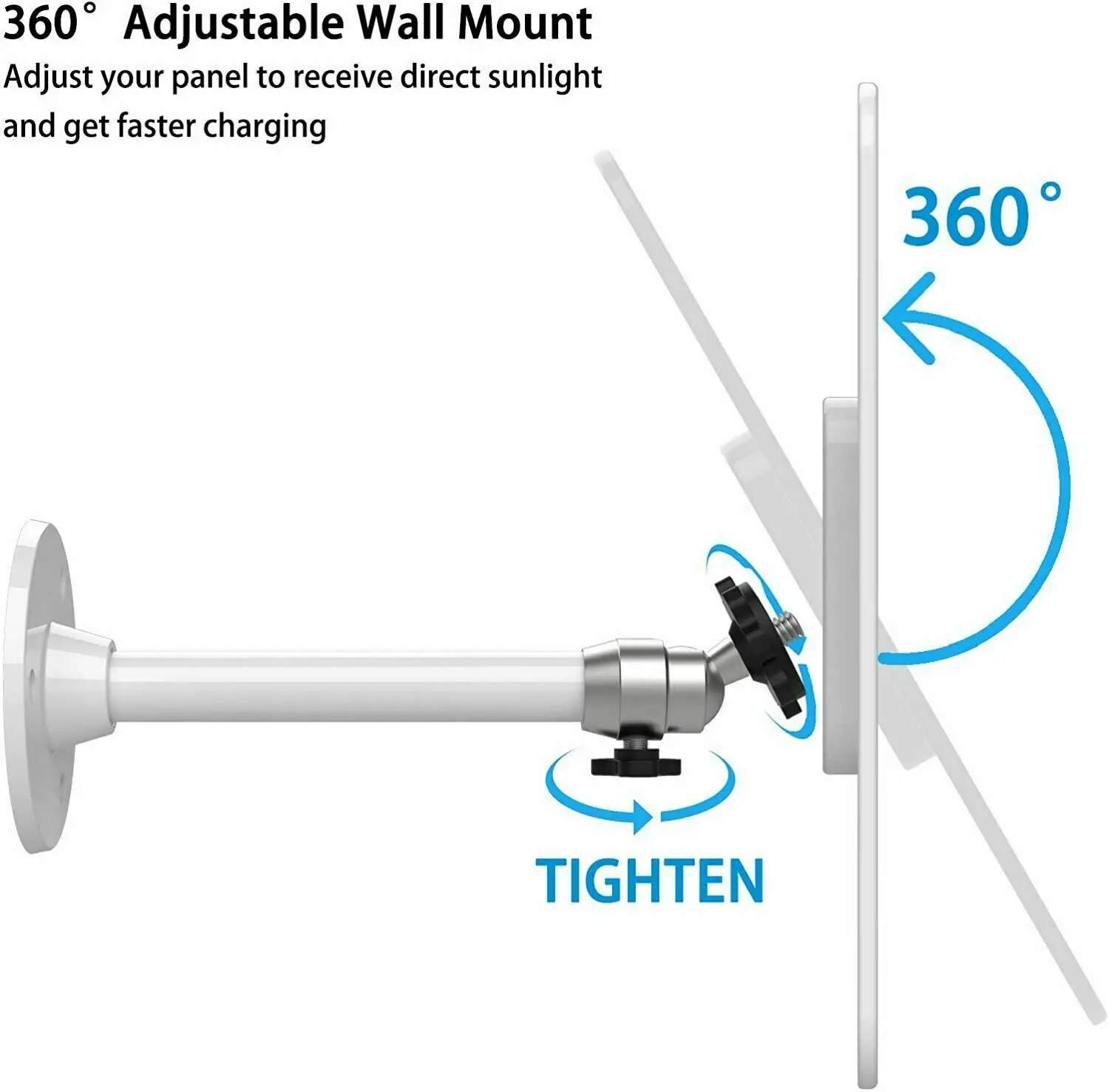 Гибкая регулировка: Безопасный Монтажный кронштейн можно отрегулировать на 360 градусов для улавливания солнечного света в разные сезоны; Непрерывное питание вашей камеры с максимальной эффективностью. Погодоустойчивая солнечная панель: поверхность солнечной панели изготовлена из монокристаллического кремния, Водонепроницаемая конструкция, условия работы от-5 °F до 120 °F (от-20 °C до 48 °C).