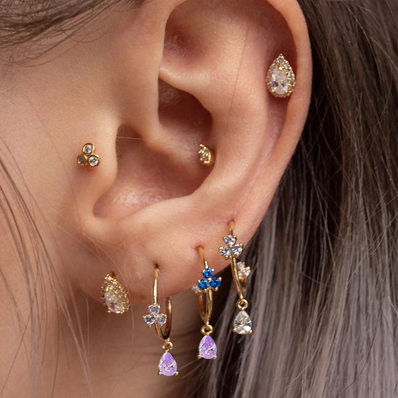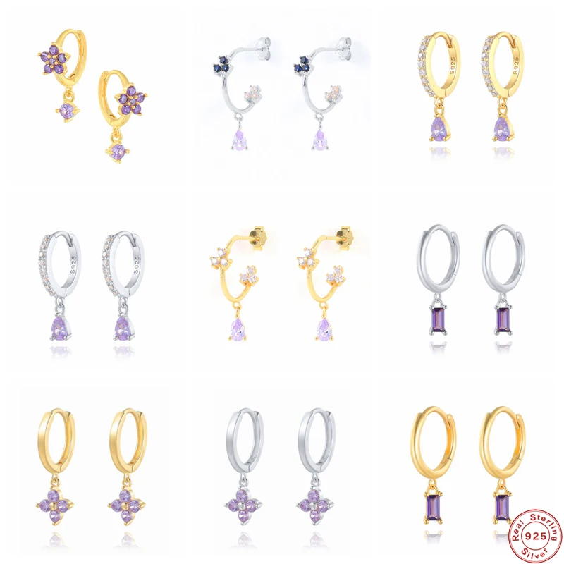 Серебро 925 пробы, фиолетовый Хрустальный цветок, очаровательные серьги-кольца для женщин, тренд 2021, Роскошный кулон в виде капли воды, ювелирные изделия