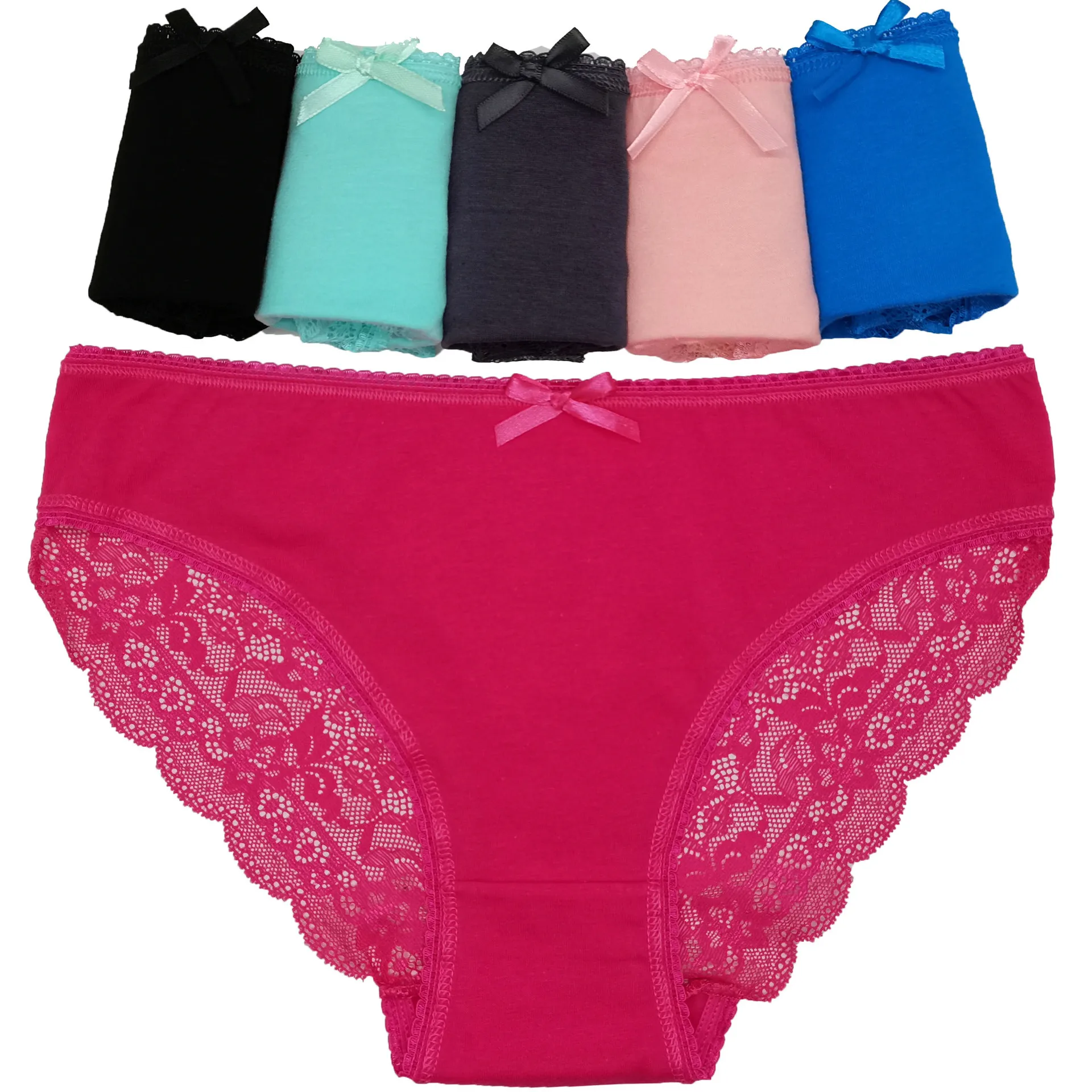 5 шт.партия, женские хлопковые кружевные трусы с заниженной талией