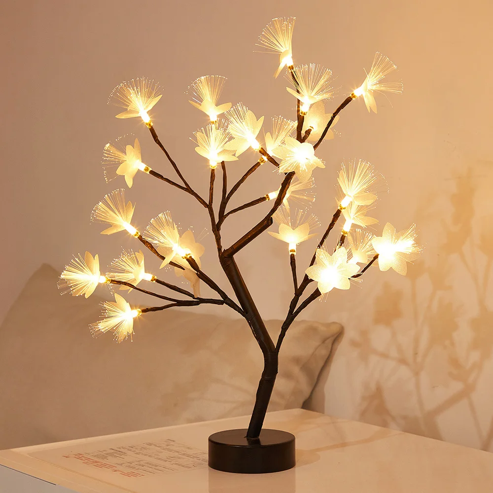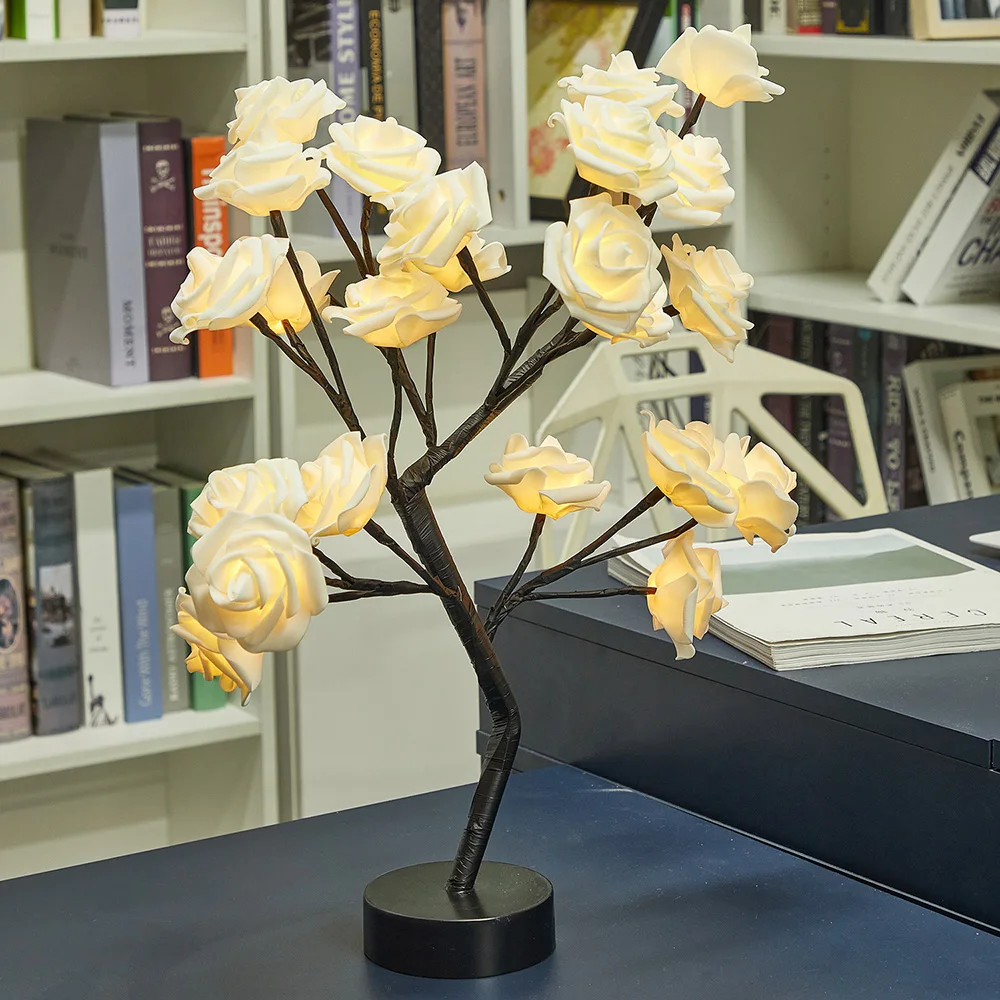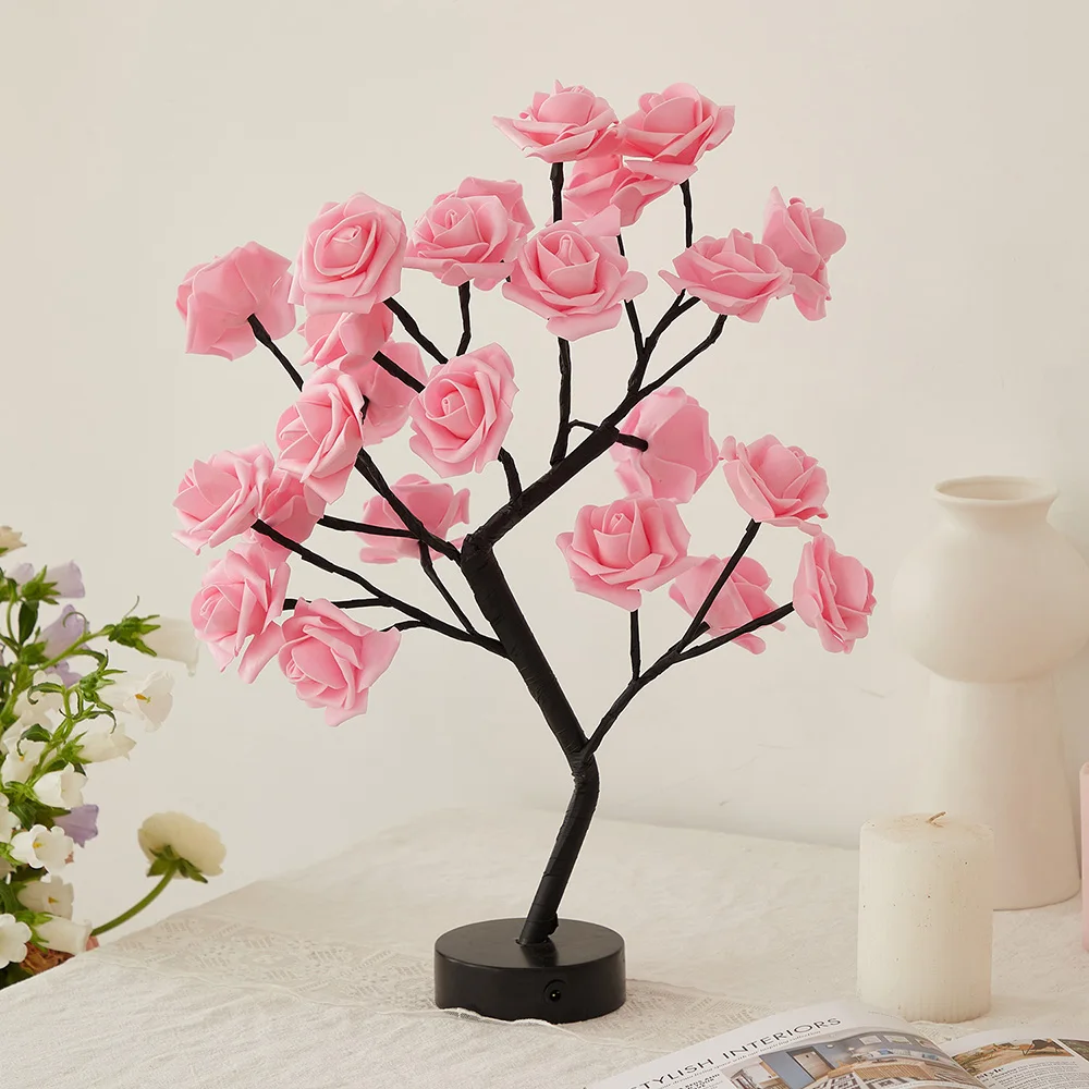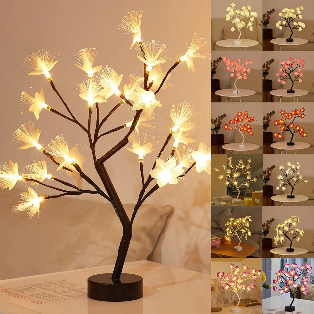 Светодиодная настольная лампа на батарейках с USB, ночник в виде розы, бонсая, дерева, украшение для спальни, рождественские светильники, домашний декор