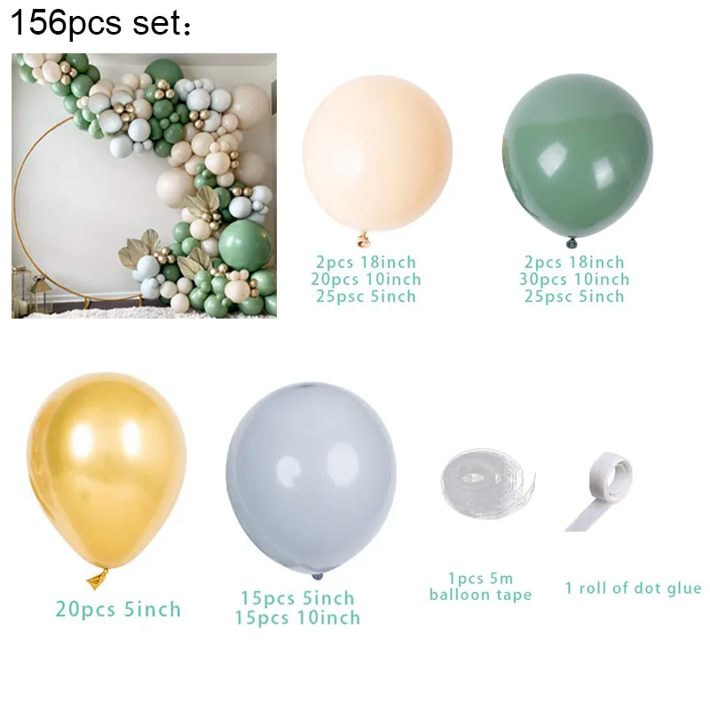 156 шт.компл. серо-зеленый воздушные шары-гирлянды АРКА ретро авокадо зеленого кожа Цвет воздушный шар цепи для Baby Shower или для вечеринки по случаю вечерние фон Настенный декор