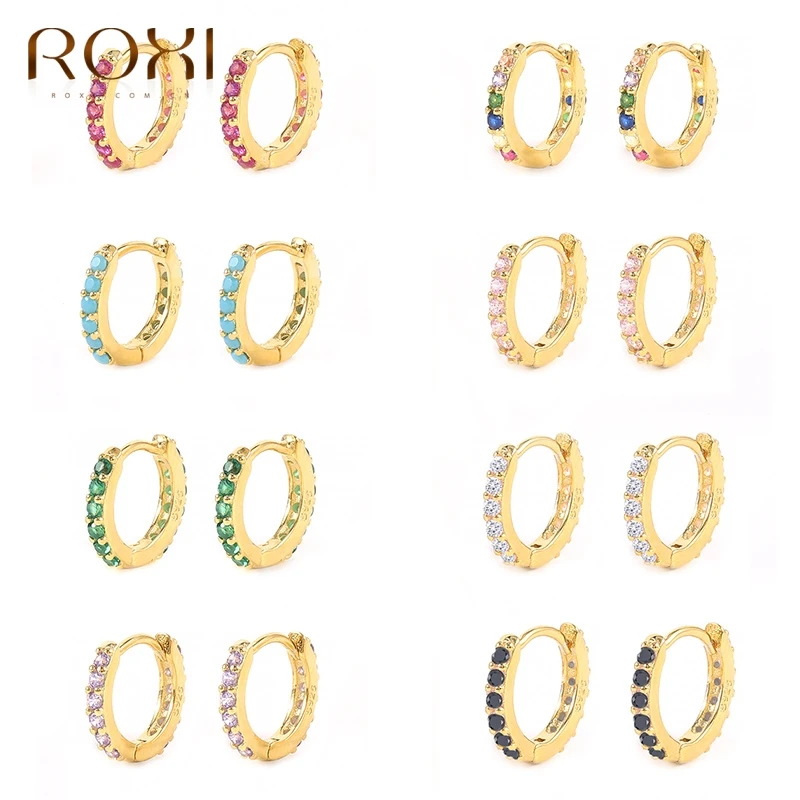 ROXI Pendientes плата 925 Круглые Серьги для Для женщин красочные Серьги в виде колец, висячие украшения для ушного хряща пирсинг уха необычные Серьги