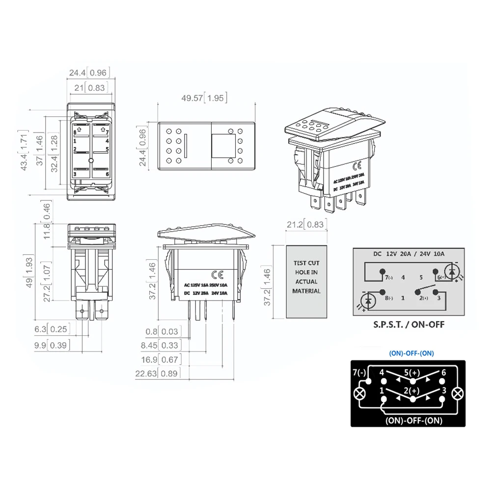 1. Материал: АБС-пластик водонепроницаемый катер кулисный переключатель, черный Жесткий поверхностный рокер.2. Номинальная мощность: 20A 12 В постоянного тока; 10A 24 В постоянного тока3. Размер: он имеет размер лицевой поверхности 50 мм x 25 мм и использует стандартное монтажное отверстие din размера 37,2 мм x 21,2 мм, такой же размер, как и переключатели ARB/Carling/NARVA.4. Водонепроницаемый: водонепроницаемый IP 655. Двойные светодиодные лампы синего цвета. Верхний светильник включается при нажатии выключателя, светильник всегда включен ниже. Нижний светильник может быть проводной, чтобы отделить светильник приборной панели. (два высококачественных светодиода излучают уютный луч, вы можете видеть его четко в темноте.)6. Безопаснее в использовании: защита от короткого замыкания, защита от перегрузки, защита от полярности7. Подходит для автомобиля, лодки, моря, яхты, RV, ATV, UTV.О функции переключателя:LE1 - LE10 переключатели-это 5 контактов однополюсный одиночный переключатель (SPST) ВКЛ-ВЫКЛСпециальные Клавишные переключатели:LE11, LE12 переключатели лебедки вход/выход: 7 контактов DPDT (ВКЛ) выкл (ВКЛ)(ВКЛ) означает мгновенное. Он работает, когда вы нажимаете переключатель, он возвращается, когда вы снимаете палец.Посылка:1x клавишный переключательДорогие друзья, есть много стилей наших переключателей, шаблоны и размеры могут быть настроены, пожалуйста, свяжитесь с нашей службой поддержки клиентов, если это необходимо!