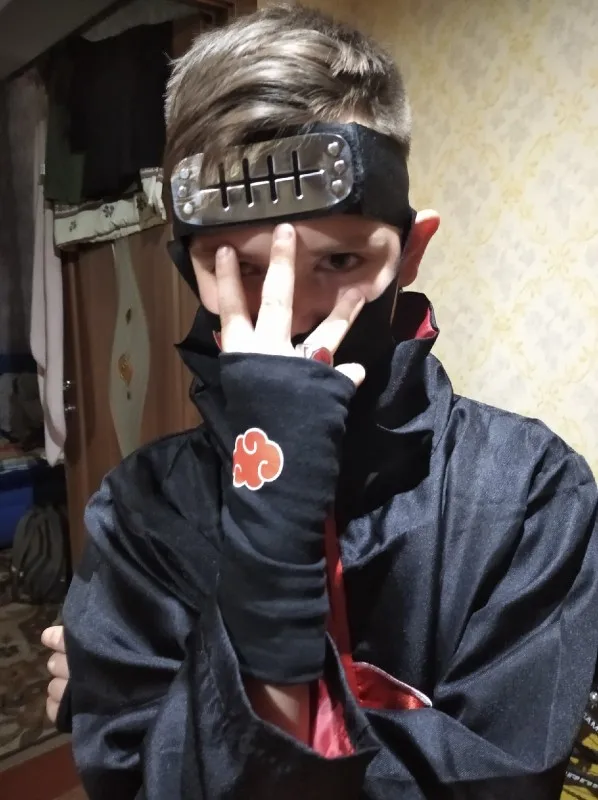 Хороший дизайн. Хорошая ткань. Маска немного туговатая, но сойдет. Кольцо можно регулировать. Кулон бомба, перчатки тоже. Единственный недочет это дезайн перчаток. Он противоречит повязке. Но это так. В целом прикид 10 из 10. Товар отправлен очень быстро. Буквально 1.5 недели прошло с момента заказа.