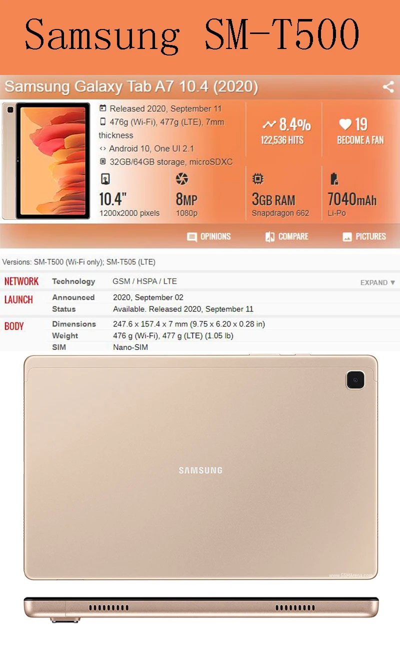 Страна: BE Color: Rose Gold Size: Tab A7 10.4 T500 Ships From: China Доставка: Standard Shipping 11.10.2021