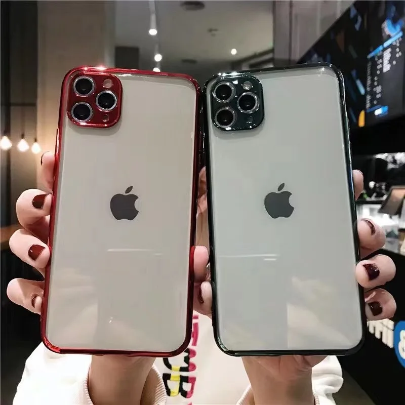 Роскошный прозрачный чехол с покрытием для iPhone 12 11 Pro Max Mini X XS XR 7 8 Plus SE 2020, квадратная рамка, мягкий силиконовый прозрачный чехол