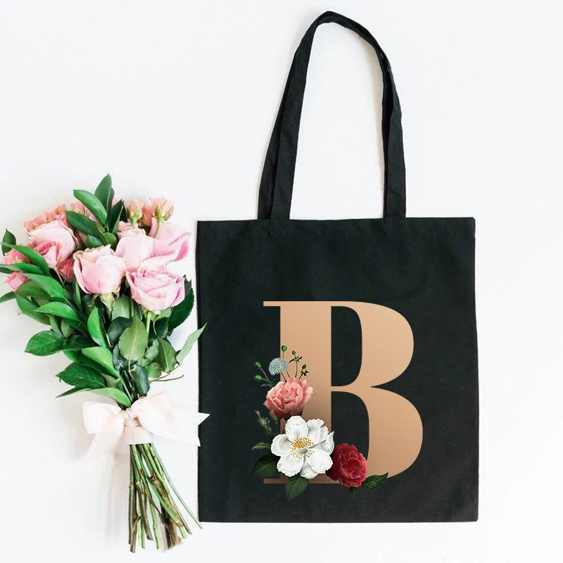 Холщовая Сумка-тоут для покупок с цветочными буквами A B C D E F G, Повседневная сумка-шоппер с цветами большой емкости, сумки через плечо в стиле Харадзюку