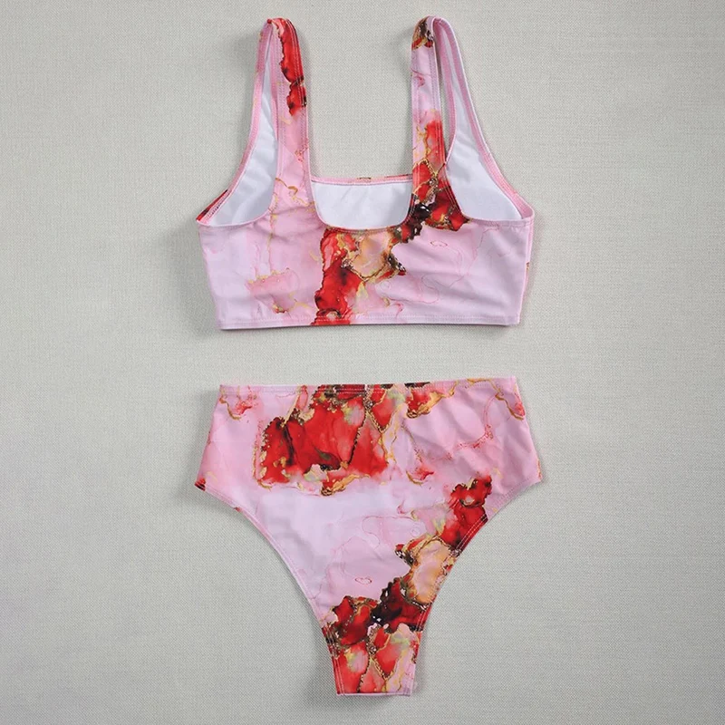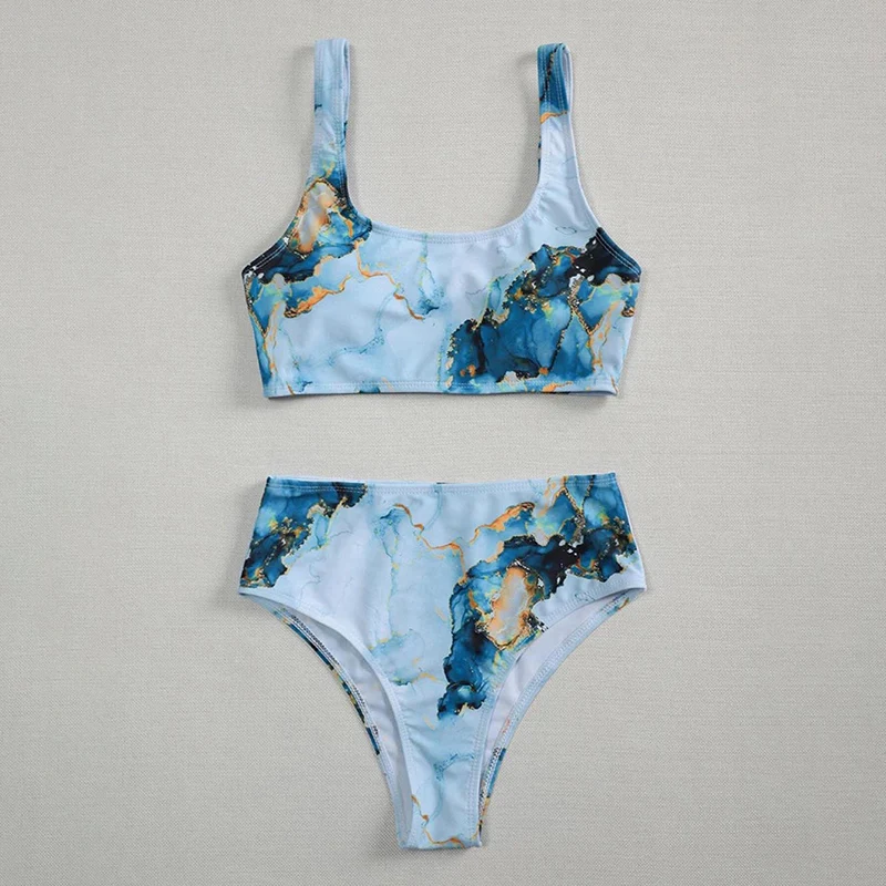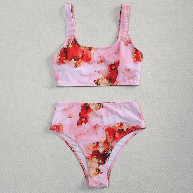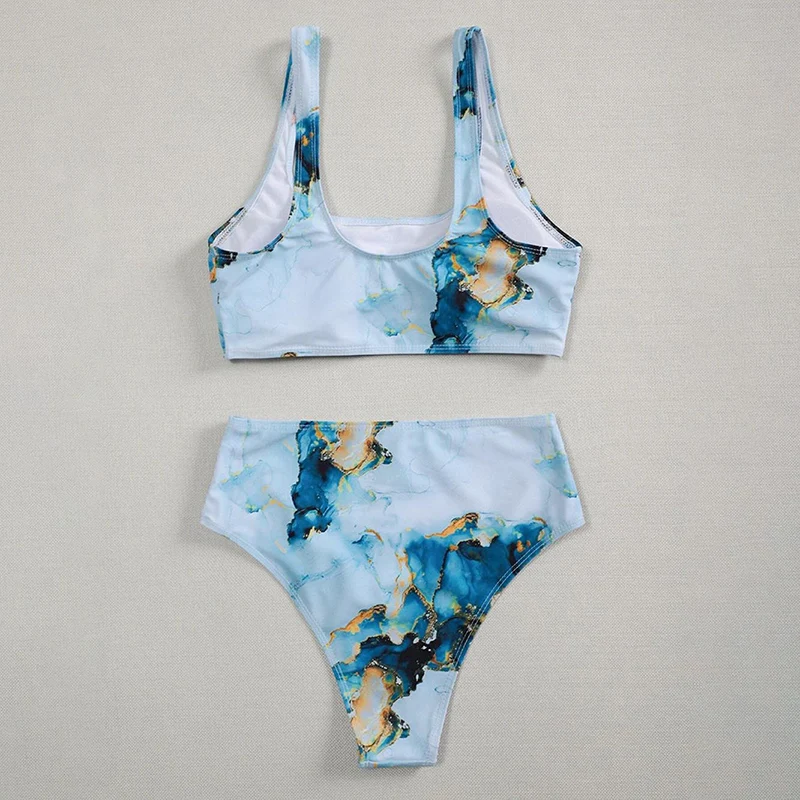 Купальник-бикини женский, с мраморным принтом, с высокой талией, пу...