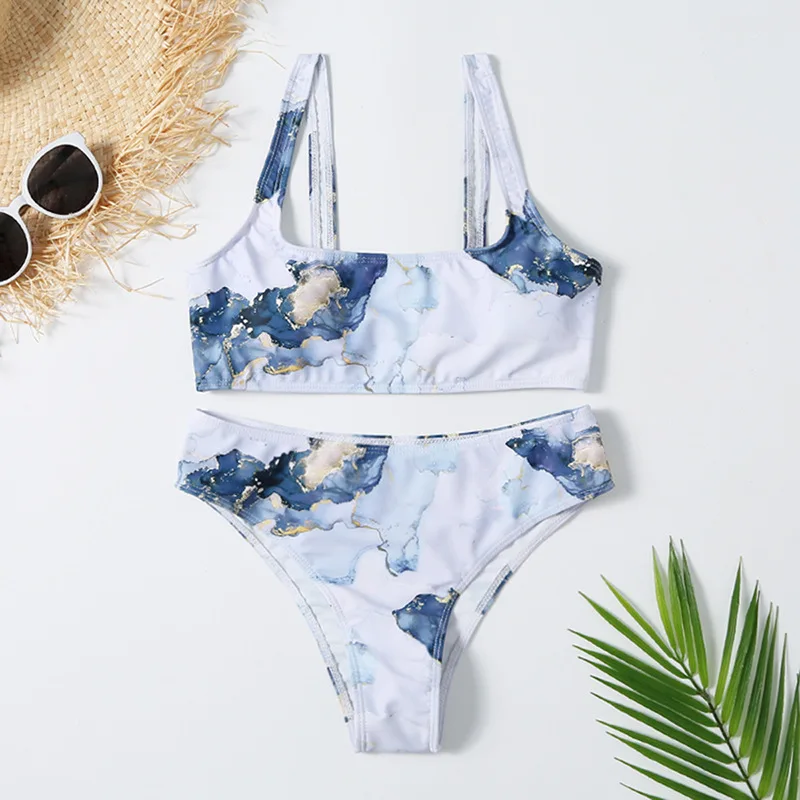 Бикини, сексуальный мраморный принт, Женский раздельный купальник, ...