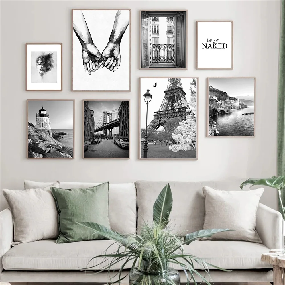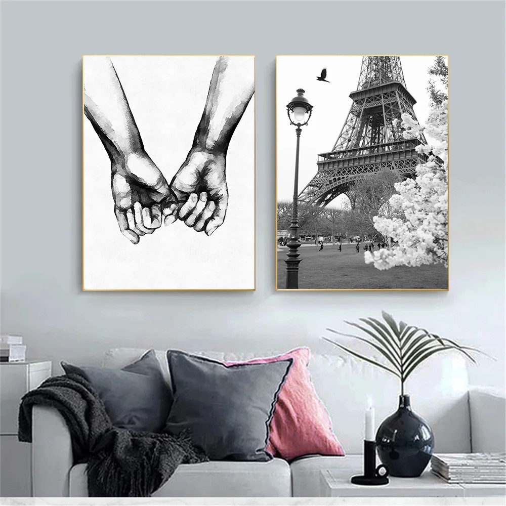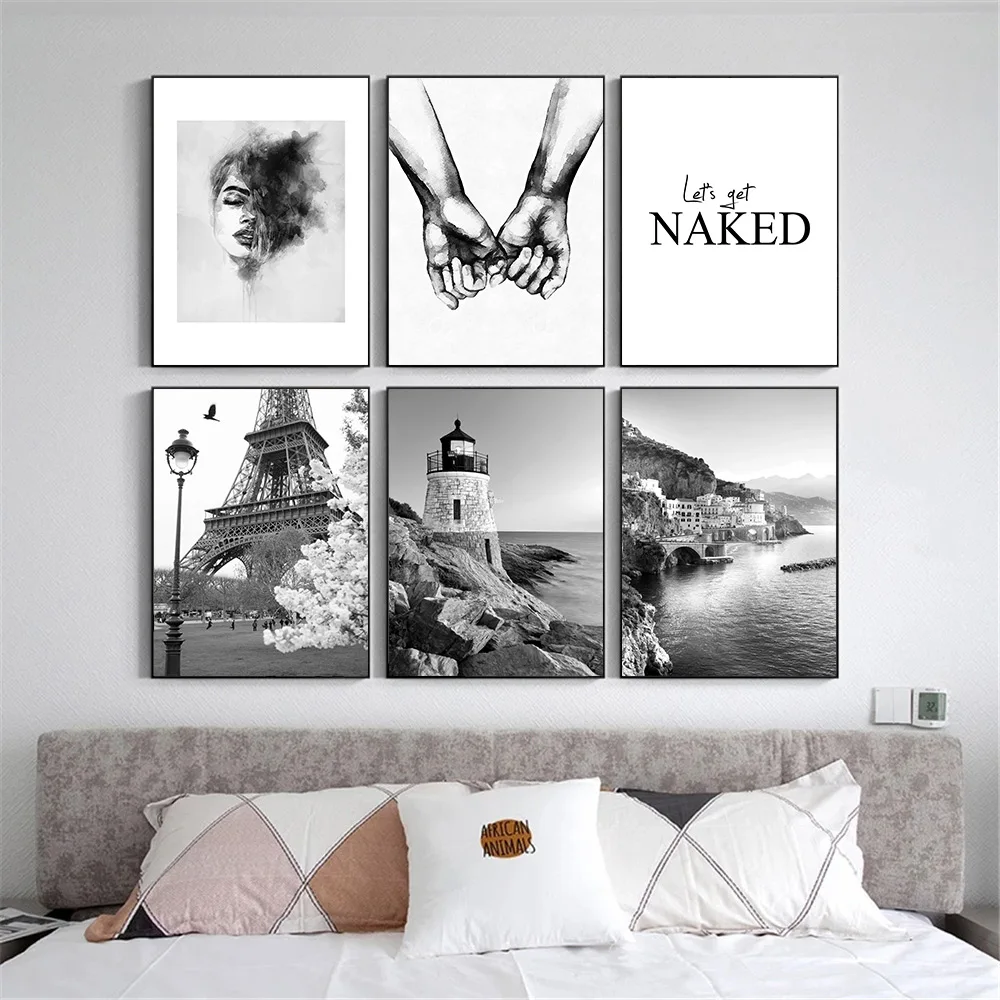 Ручная работа Эйфелева башня цветок настенный художественный плакат пляж, маяк архитектура пейзаж принт цитаты Холст Картина домашний декор