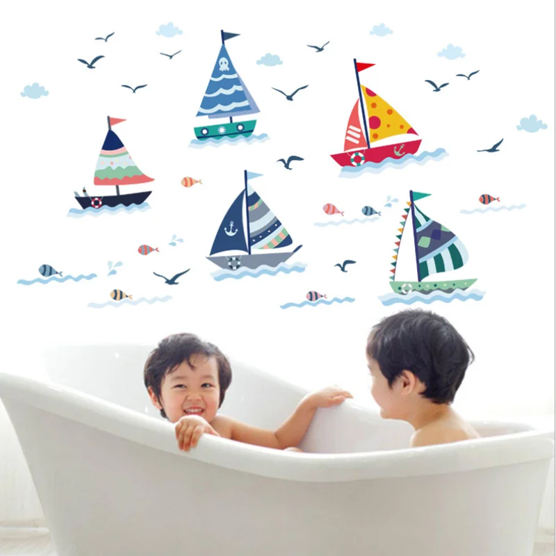 Мультяшные наклейки Sail, украшение для детской комнаты и детского сада, стеклянные обои для ванной комнаты, домашние декоративные настенные наклейки.
