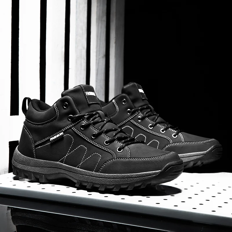 Мужские зимние ботинки, водонепроницаемые кожаные кроссовки, супер ...