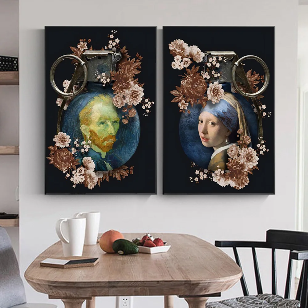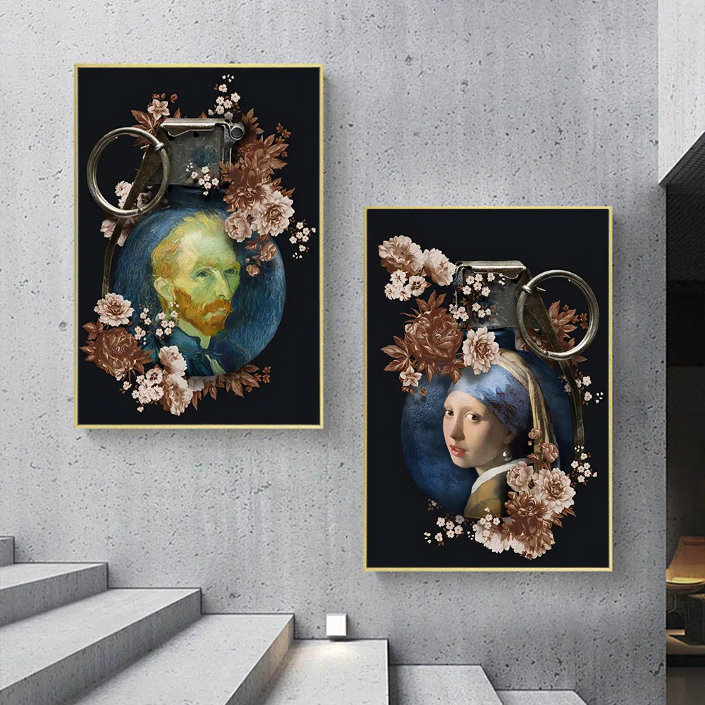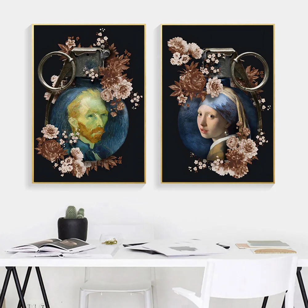 Картина с изображением девушки из Ван Гога и жемчуга с цветами и гранатами, забавные настенные художественные плакаты с изображением известного человека, Картина на холсте, украшение для дома