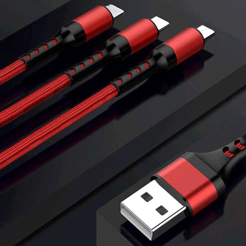 Кабель для передачи данных «Три в одном» прост в использовании, сгибается и не деформируется, быстро заряжается и отличается хорошим качеством