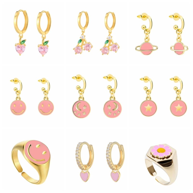 Автоклав 925 пробы Серебряные серьги для Для женщин розовый серьги-смайлики мотаться пирсинг уха Pendientes подарок для мамы 2021 тренд Винтаж