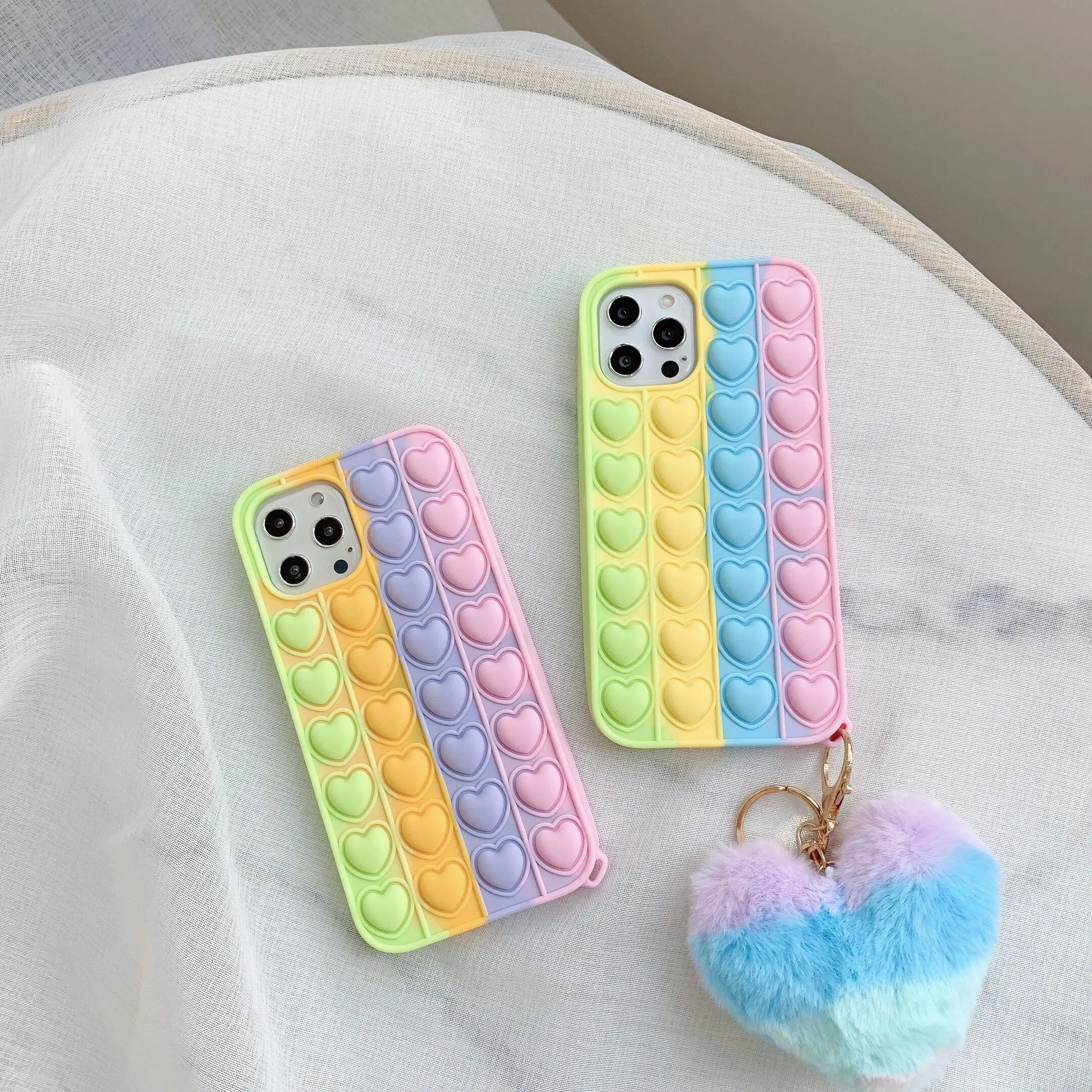Милый Радужный чехол с подвесками в форме сердца для Samsung Galaxy A01, A10E, A21, A30, A32, A50, A51, a71, чехол-пузырь для снятия стресса