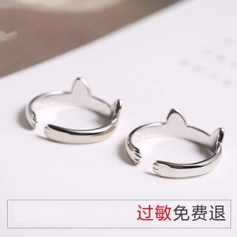 Серебряное кольцо с кошачьими ушками, открытое дизайнерское милое модное ювелирное изделие, кольцо для женщин, девушек, детей, подарок, регулируемое кольцо, оптовая продажа