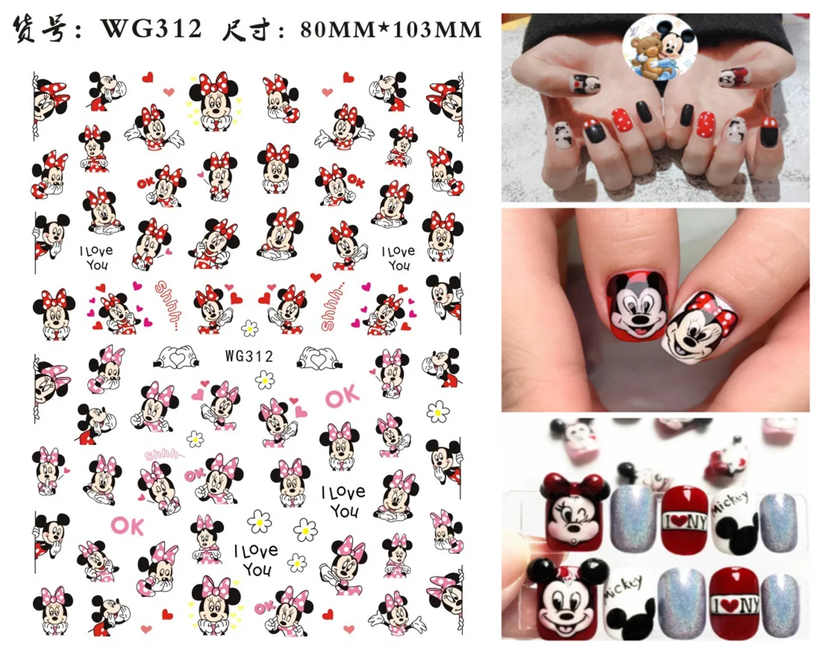 Наклейки для дизайна ногтей, 1 шт., с изображением Микки и Минни Ма...