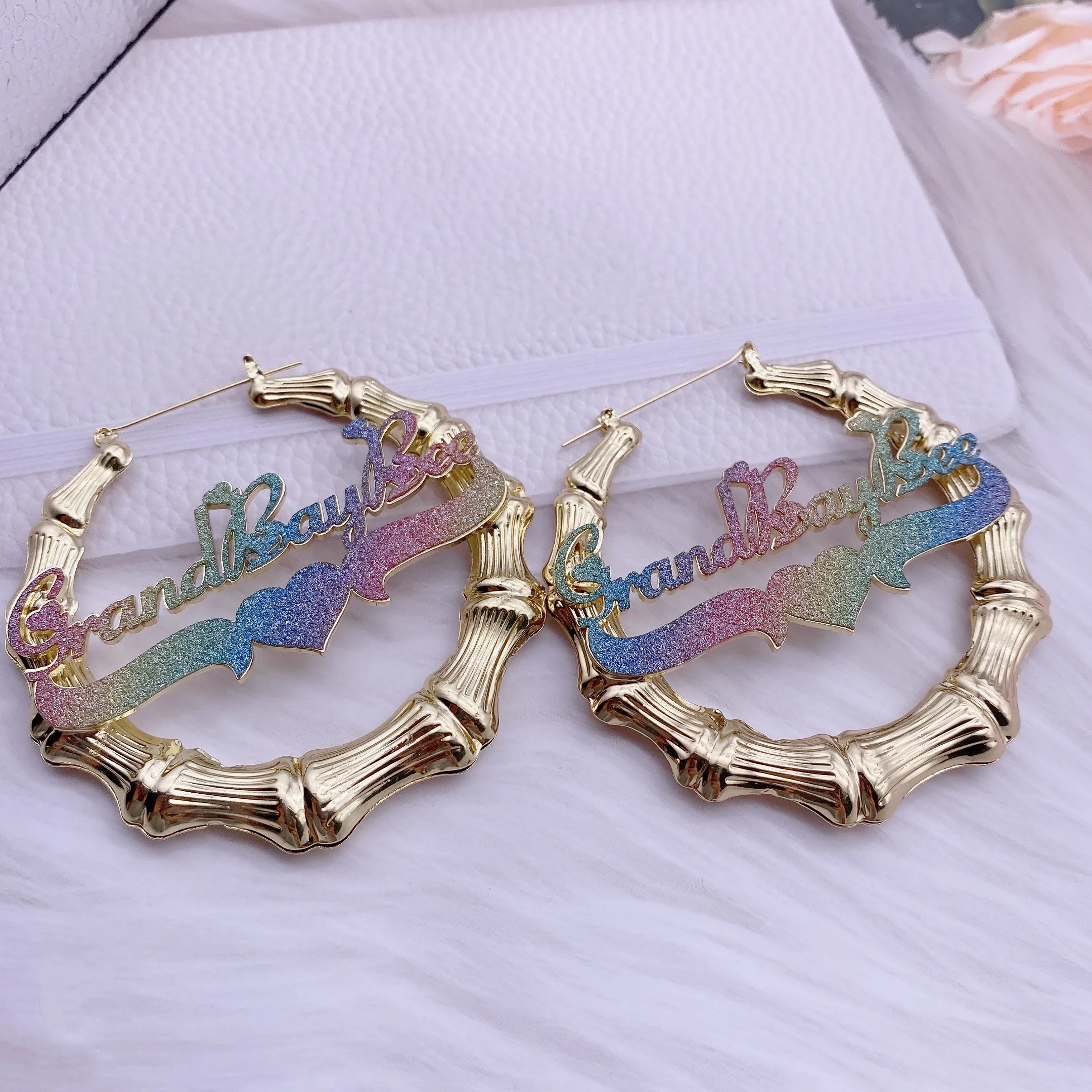 Бамбук Серьги-кольца настраиваемые серьги с именем на заказ в виде ...