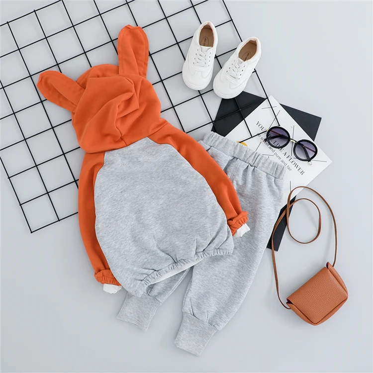 Одежда для маленьких девочек, наряд на весну и осень, комплекты одежды для малышей, Детская футболка с капюшоном и мультяшным Кроликом, штаны