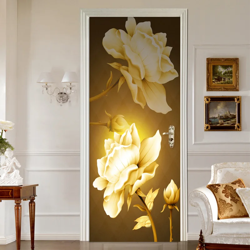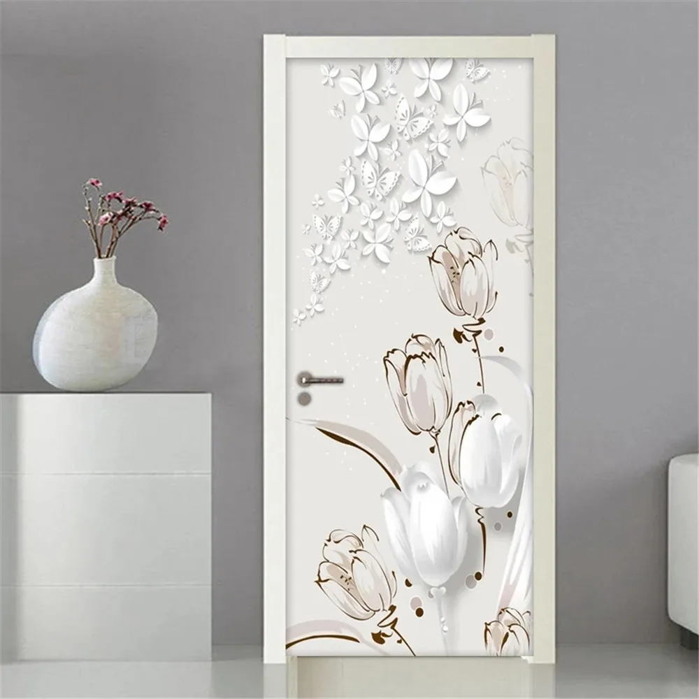 3D дверные наклейки из ПВХ, современные абстрактные Модные линии, серебряные жемчужины, обои для гостиной, художественные дверные плакаты, самоклеящиеся настенные наклейки
