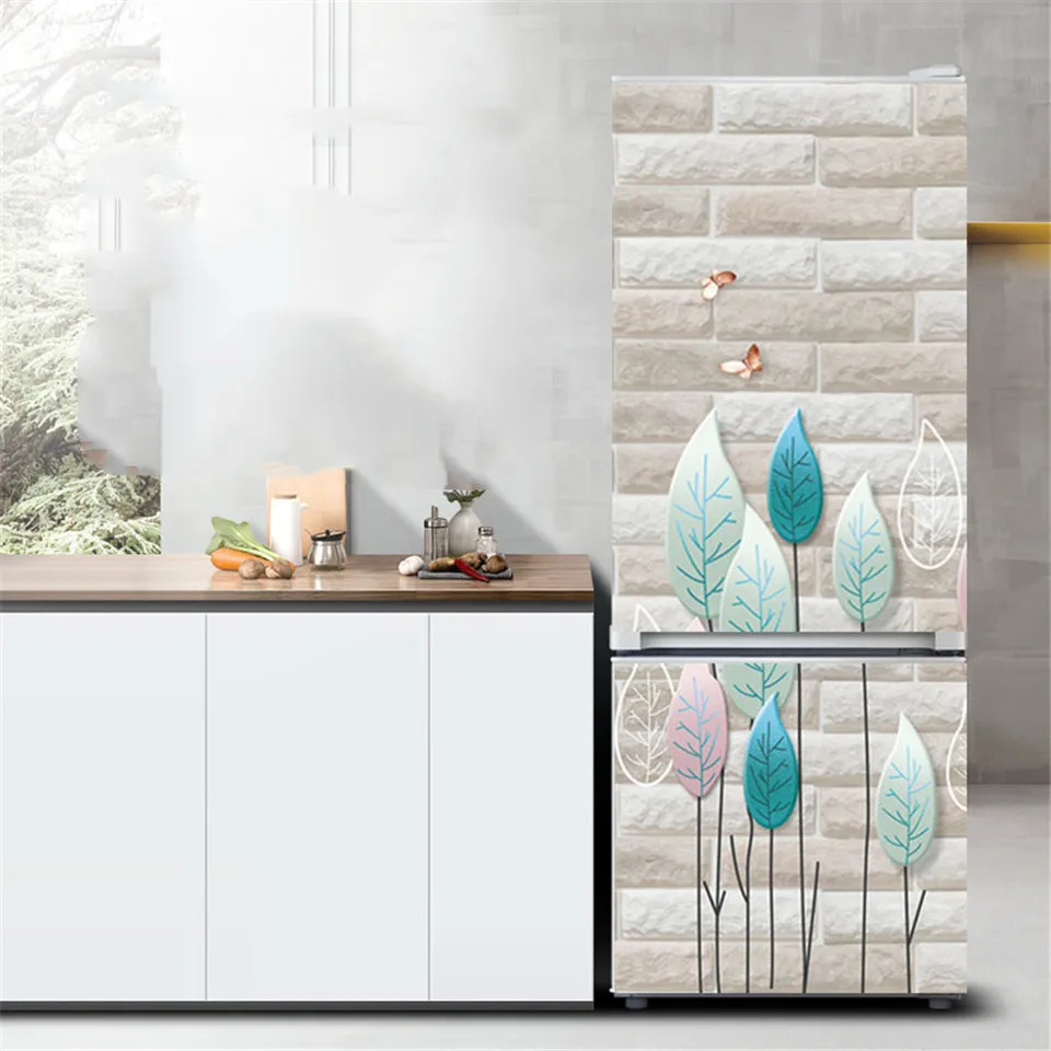Наклейка на холодильник с цветочным рисунком, ПВХ обои с клейкой поверхностью, домашний декор, дверь гриба, настенная Водонепроницаемая кухня, дизайн холодильника