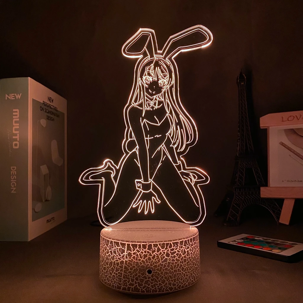 Акриловый светодиодный ночсветильник Waifu Mai Sakurajima, светодиодный ночсветильник для спальни, Декор, Mai светильник, подарок для друга, Sakurajima Bunny Girl
