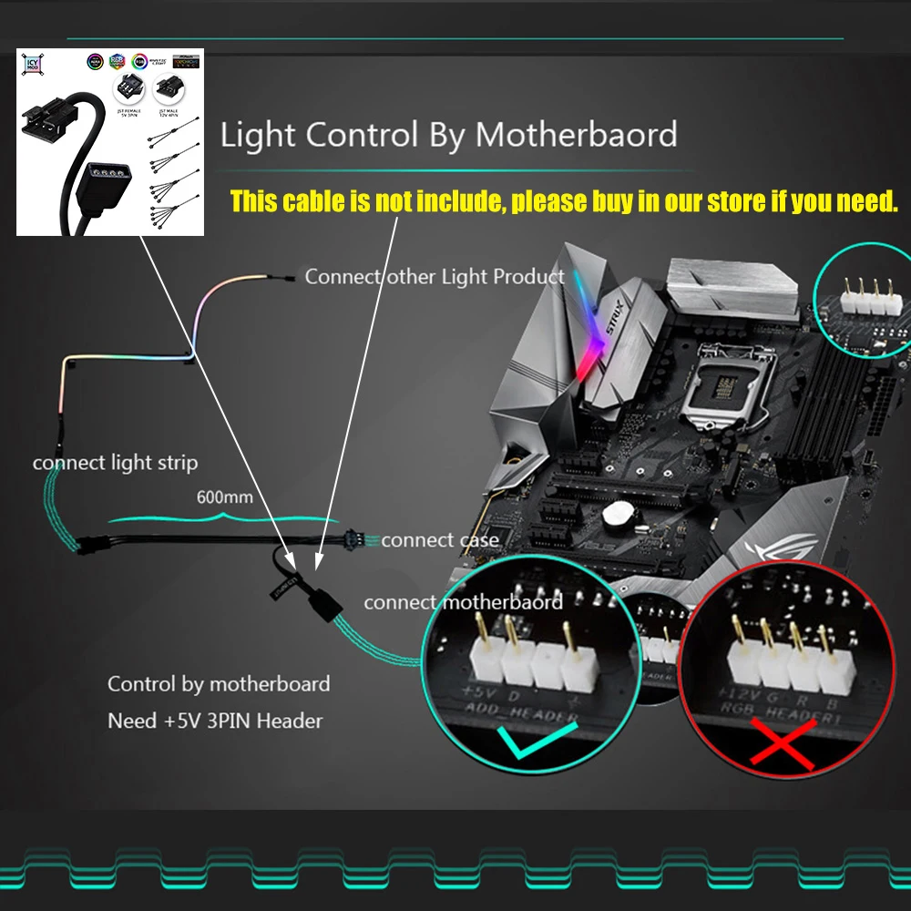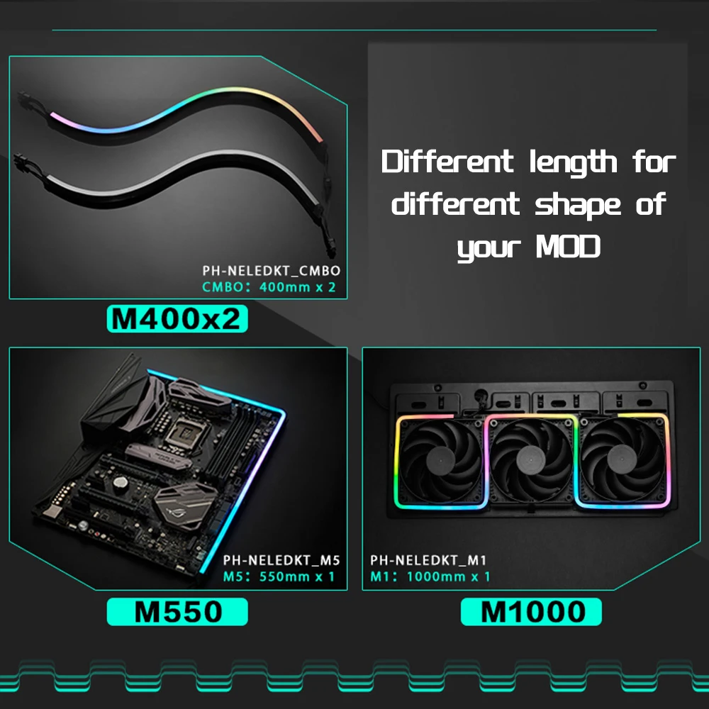 Гибкие DIY комбинированный светильник полосы ARGB неоновые компьютер чехол украшения Светодиодные ленты 5V 3PIN светильник заголовок и 13 мм x 5,5 мм x 400 мм X 2 шт.