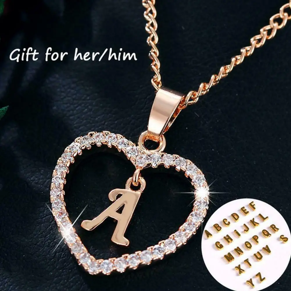 Женское колье с подвеской в виде сердечка, 26 букв, ожерелье с кристаллами из циркона