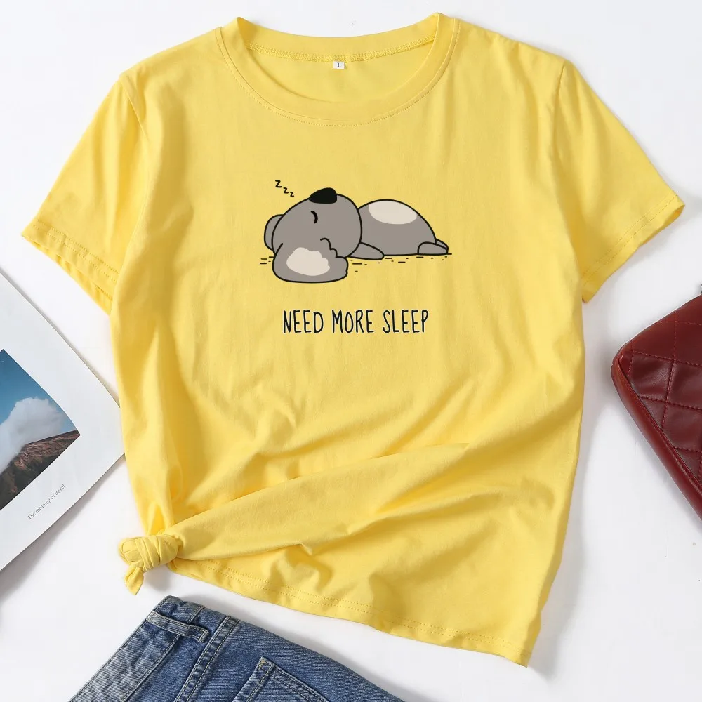 Нужно большее количество сна Забавный коала женская футболка с коротким рукавом футболки женские летние топы из хлопка Графический Тройник женский футболка; Одежда