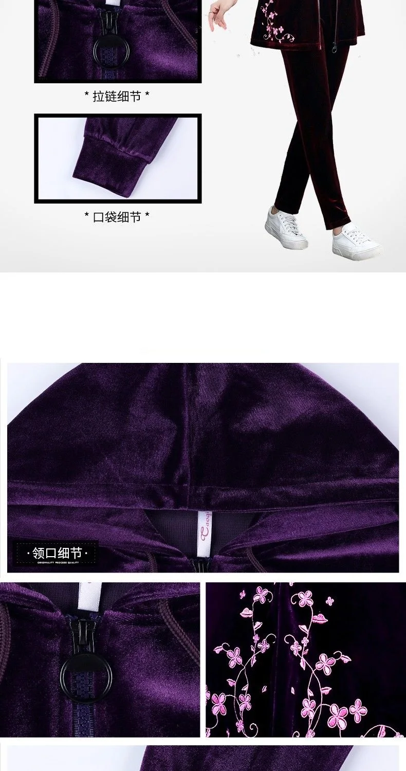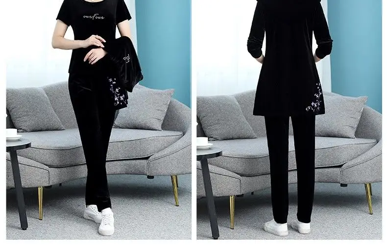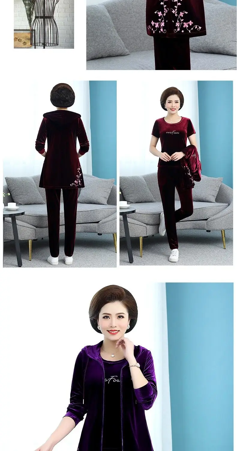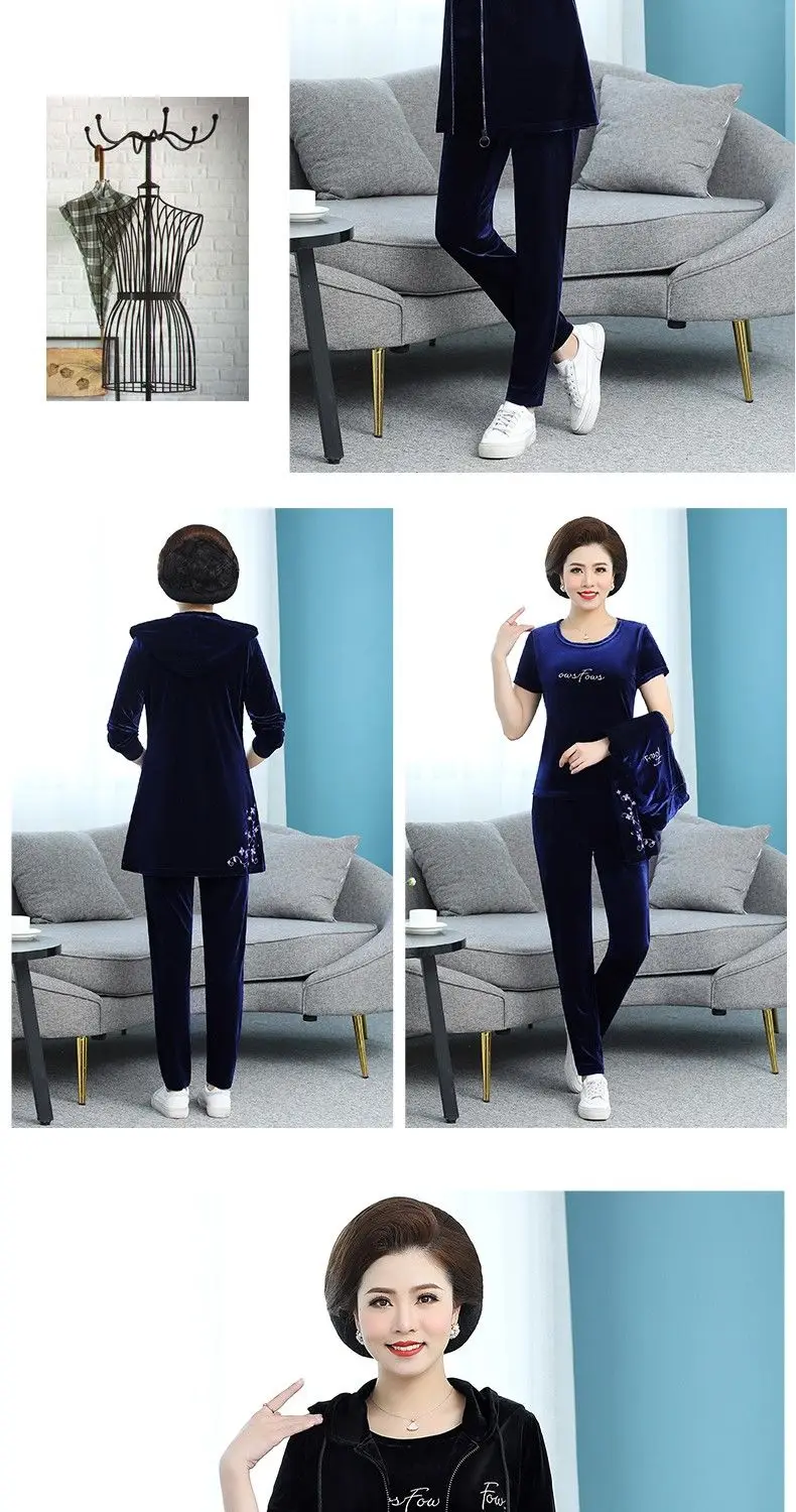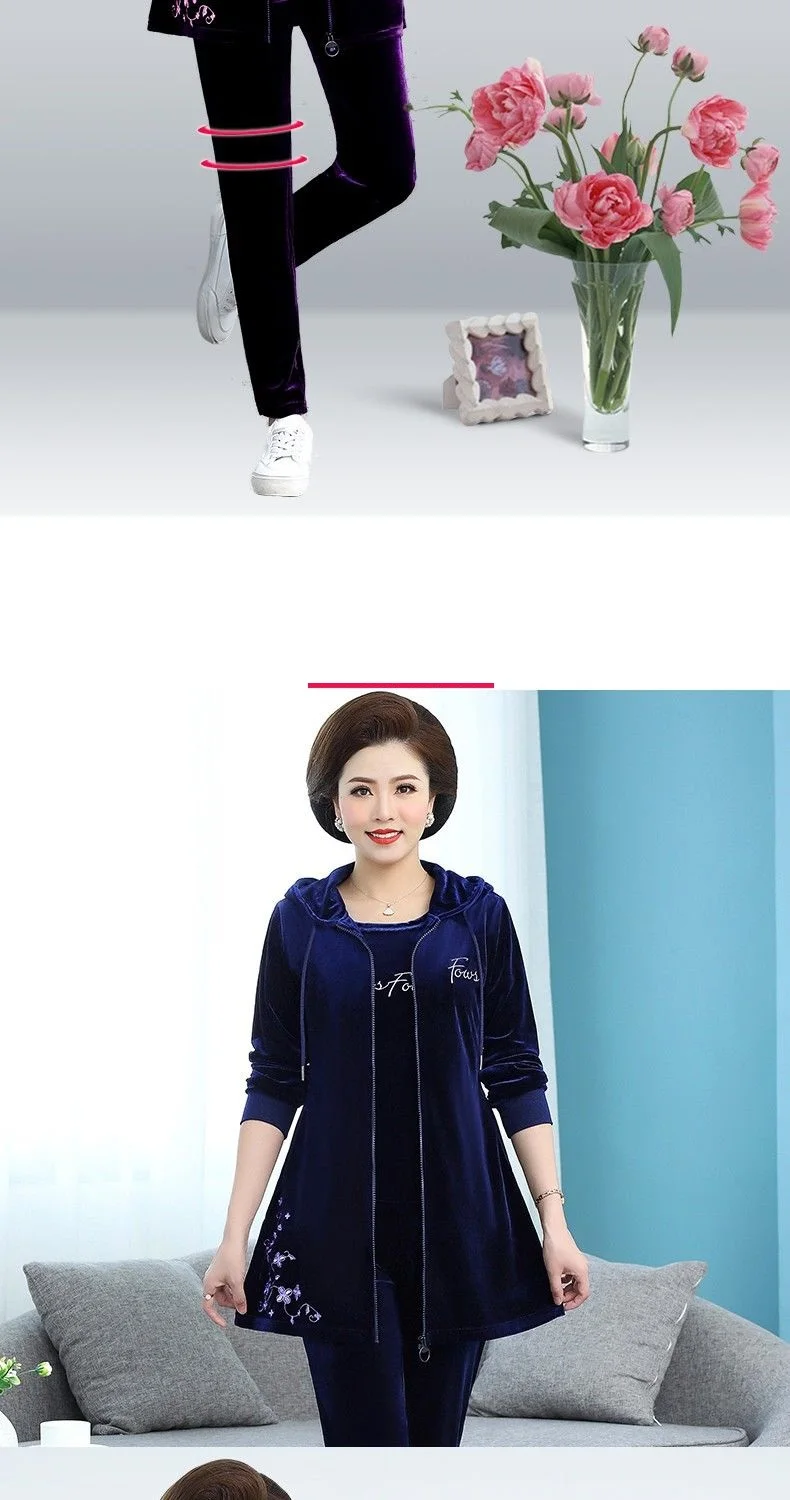 Повседневный бархатный костюм из трех предметов для женщин среднего возраста, свободная спортивная одежда большого размера, длинное пальто, топы, одежда для мам, спортивный костюм
