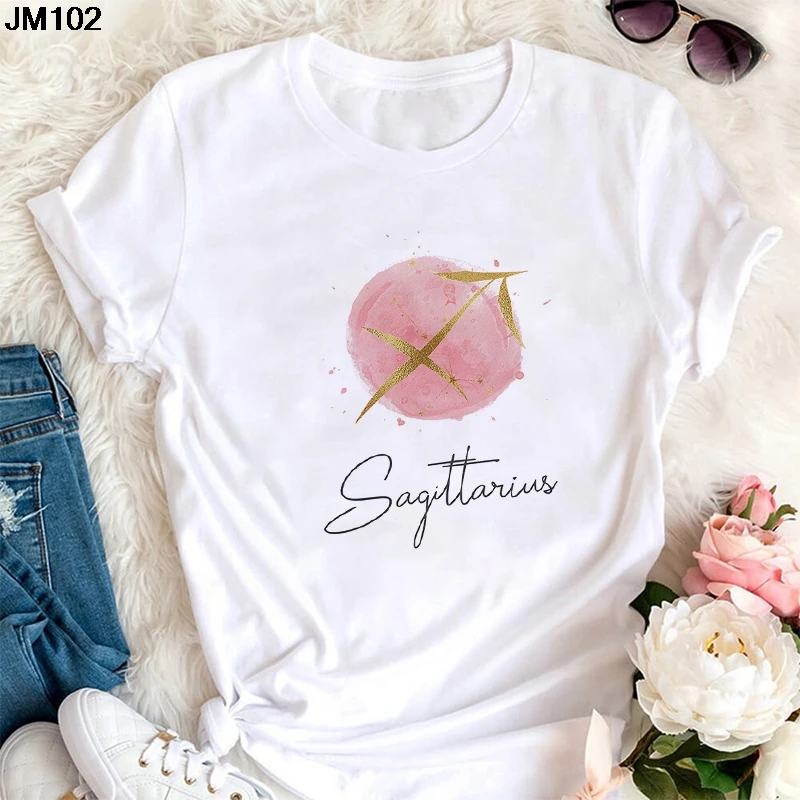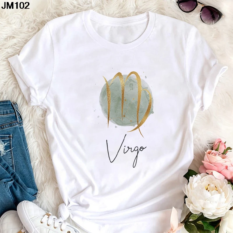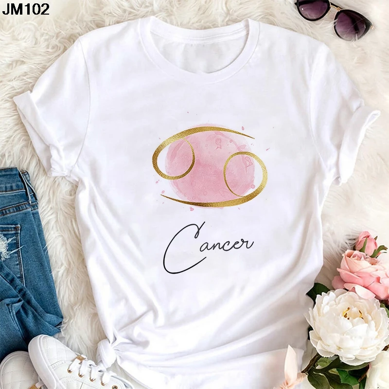 Футболка женская тонкая белая с принтом 12 созвездий, Повседневная модная рубашка в стиле Харадзюку, одежда для лета