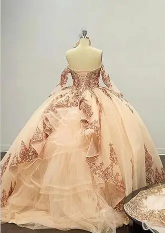 Розовое Золотое блестящее бальное платье, платья для Quinceanera со...