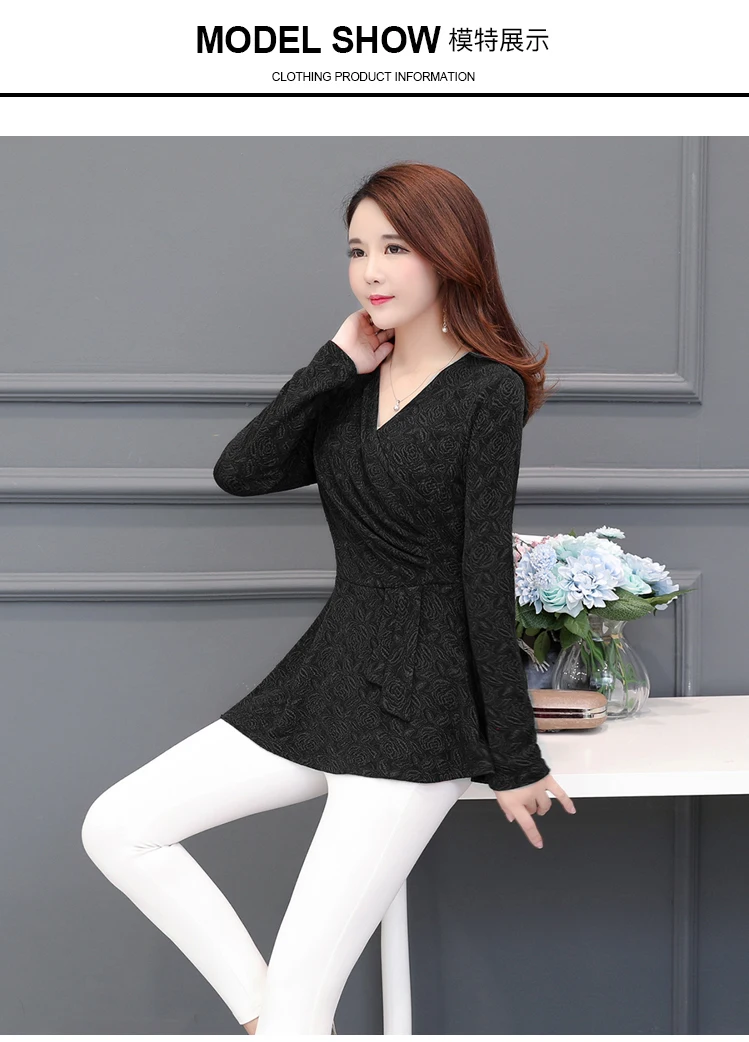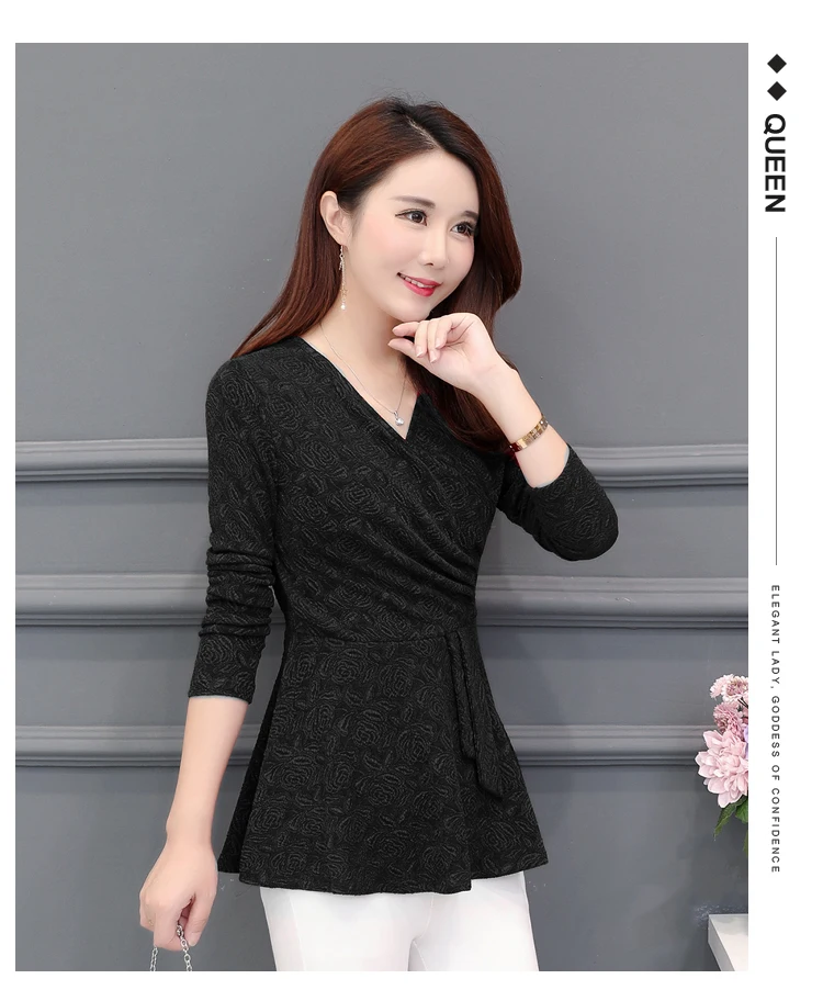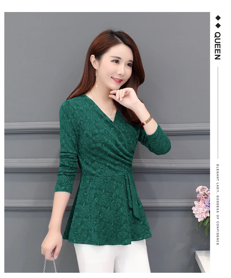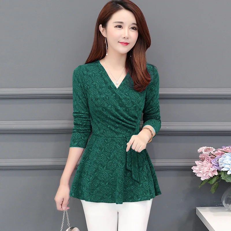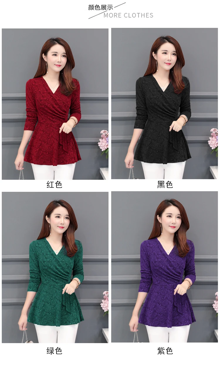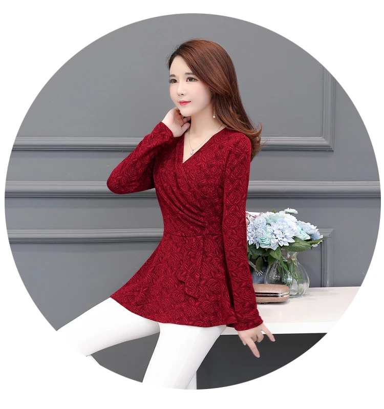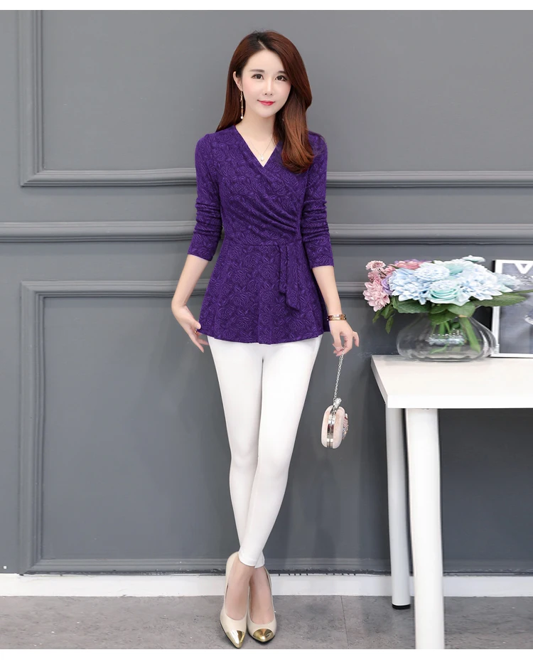 Женский топ с V-образным вырезом, облегающий Топ с длинным рукавом, фиолетовые красные цветы, блузки, рубашки повседневные, новинка 2021, размера плюс