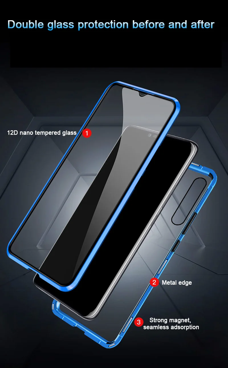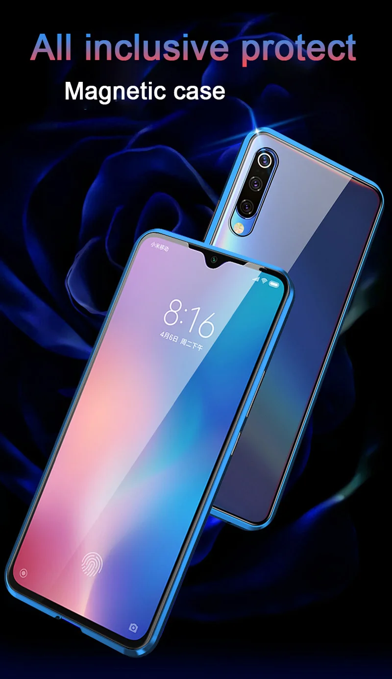 Двухсторонний магнитный металлический чехол для Redmi Note 9 9S 8 8T 7 Pro 8A K20 Xiaomi 10 9SE 9T 9Lite CC9 CC9E A3 POCO F1, стеклянный чехол
