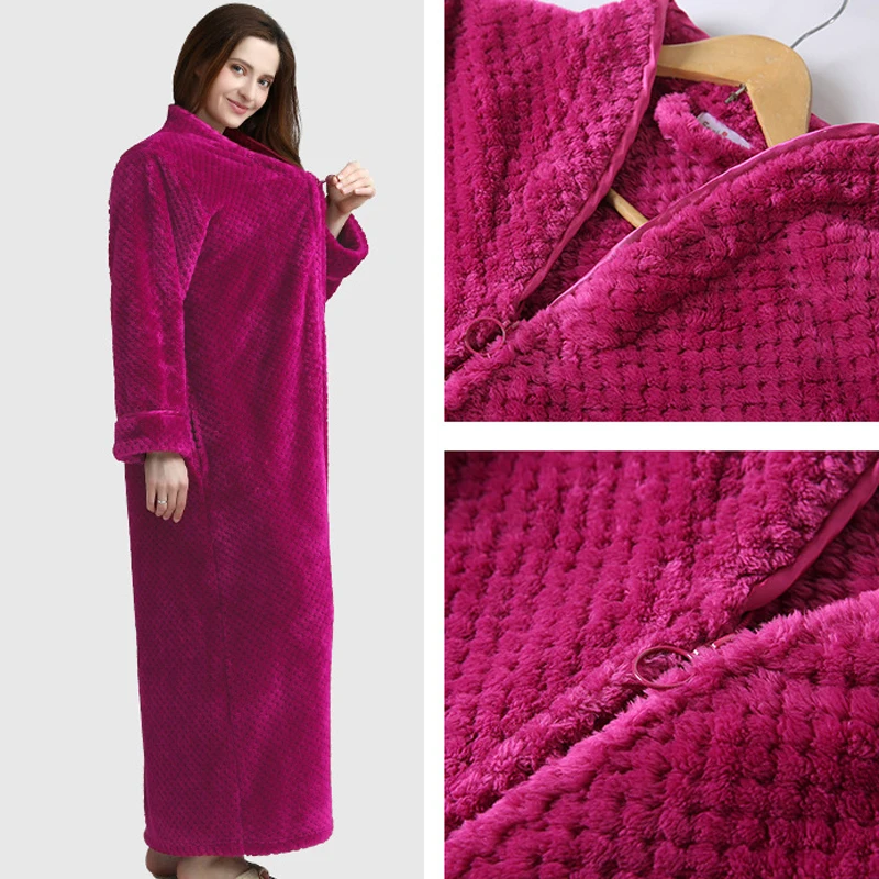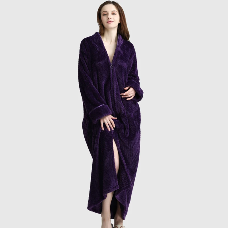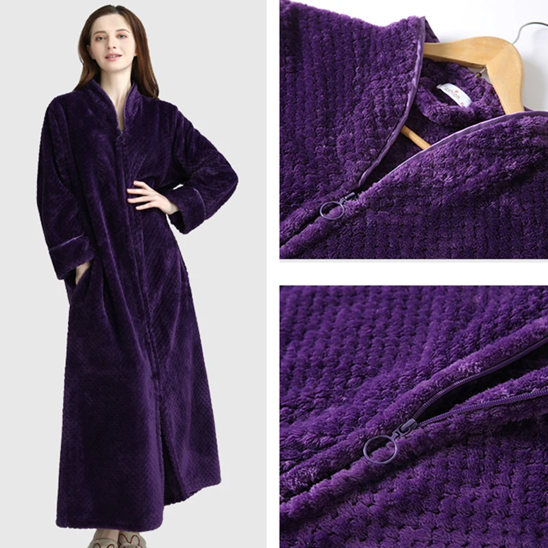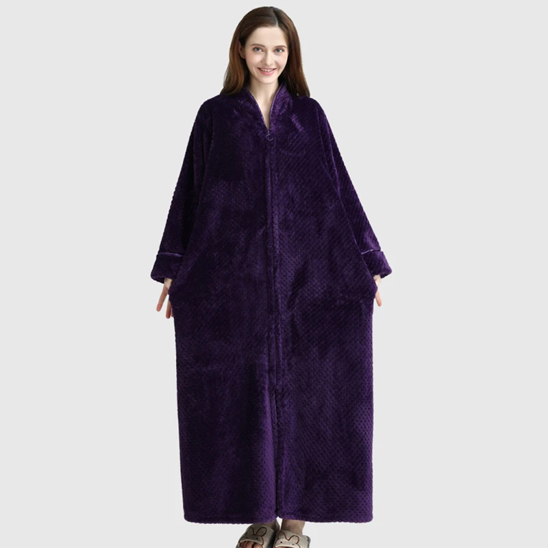 Свободный женский халат, фланелевый Халат с длинными рукавами и карманами, Женская Повседневная Домашняя одежда, пушистые зимние теплые халаты на молнии для женщин, новинка 2021