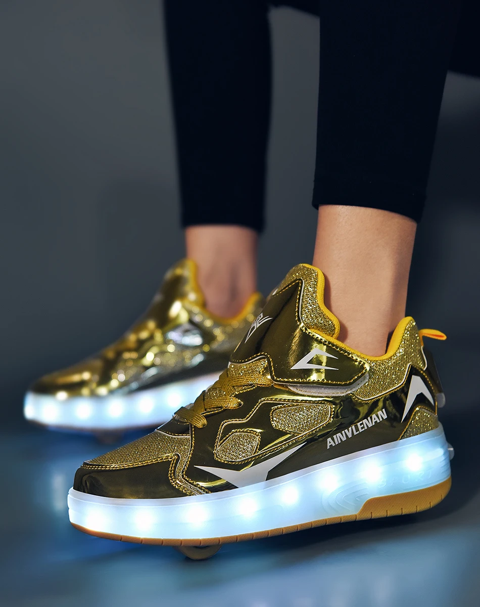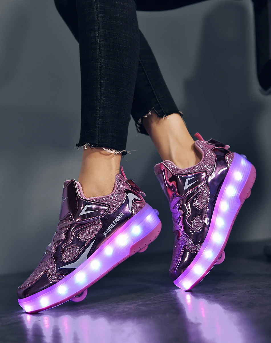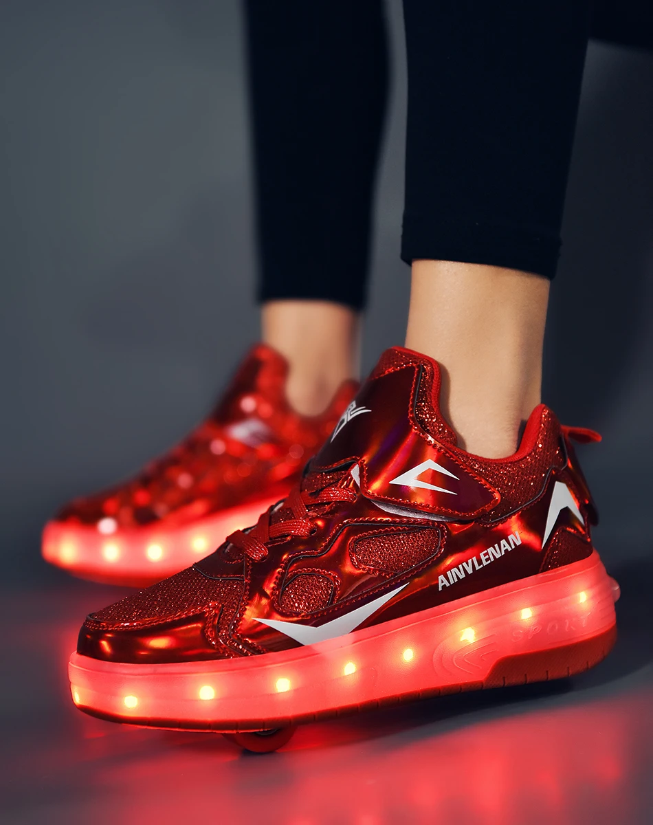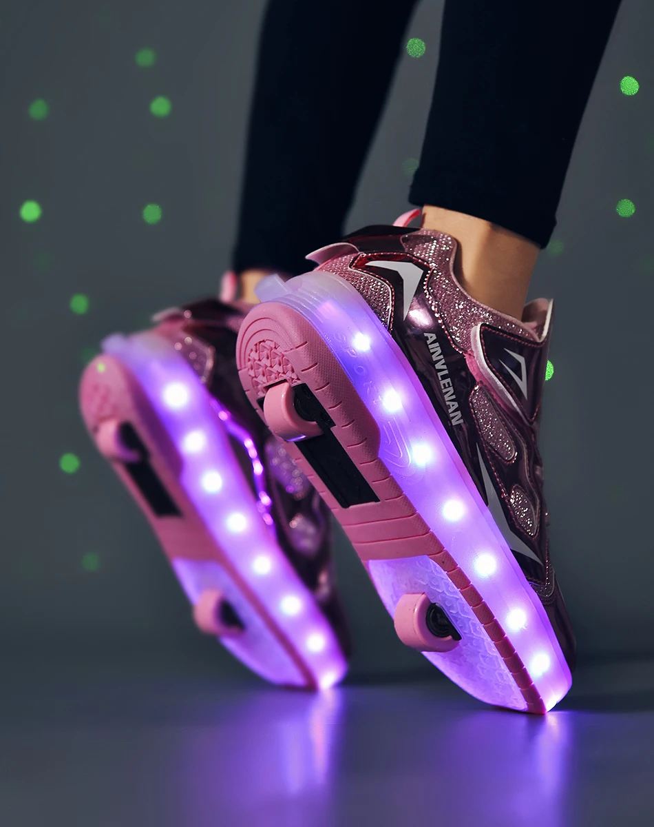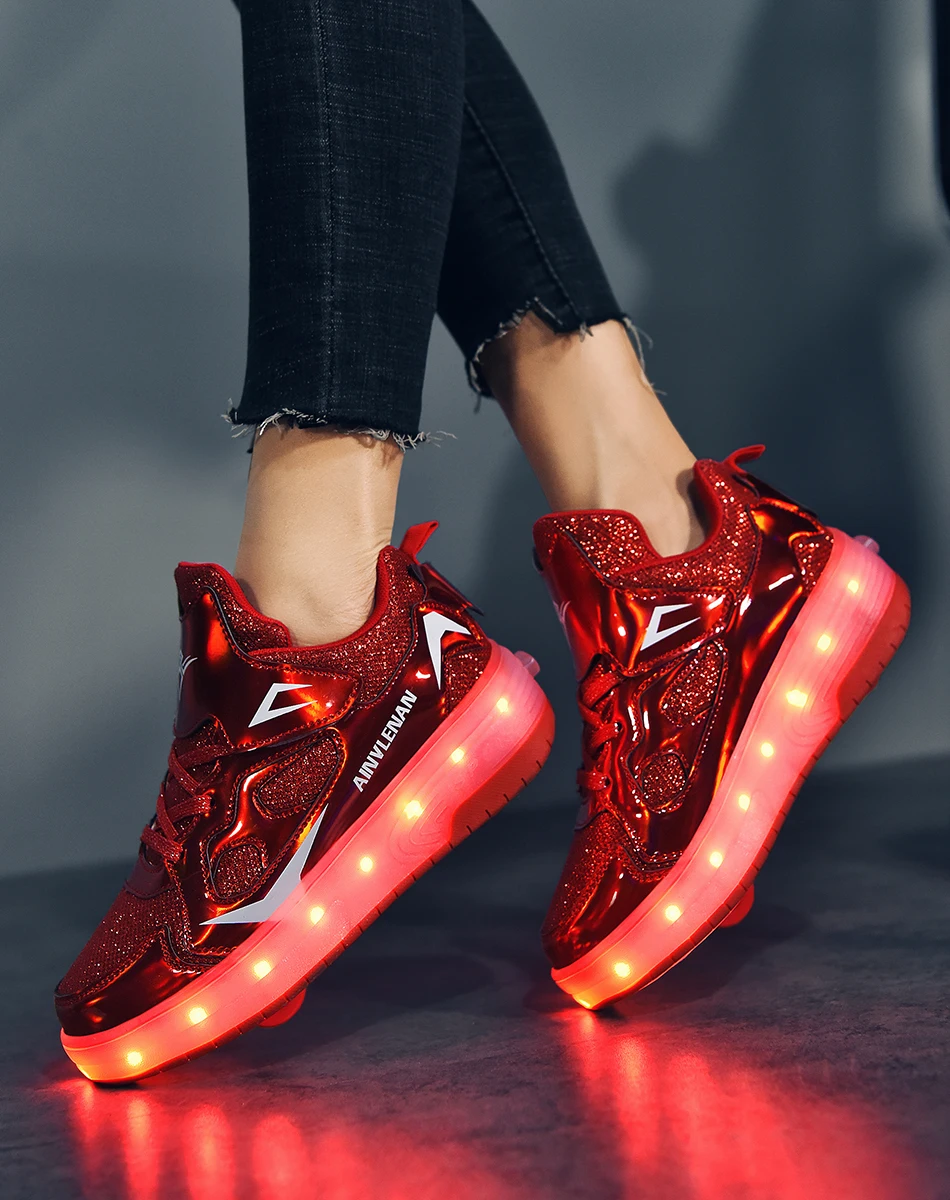 Детей роликовых коньках обувь со светодиодной подсветкой для детей с двумя колесами, светящиеся кроссовки для мальчиков и девочек обувь, зарядка через USB со светодиодной подсветкой Размеры 28-40