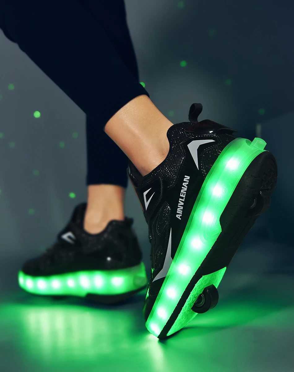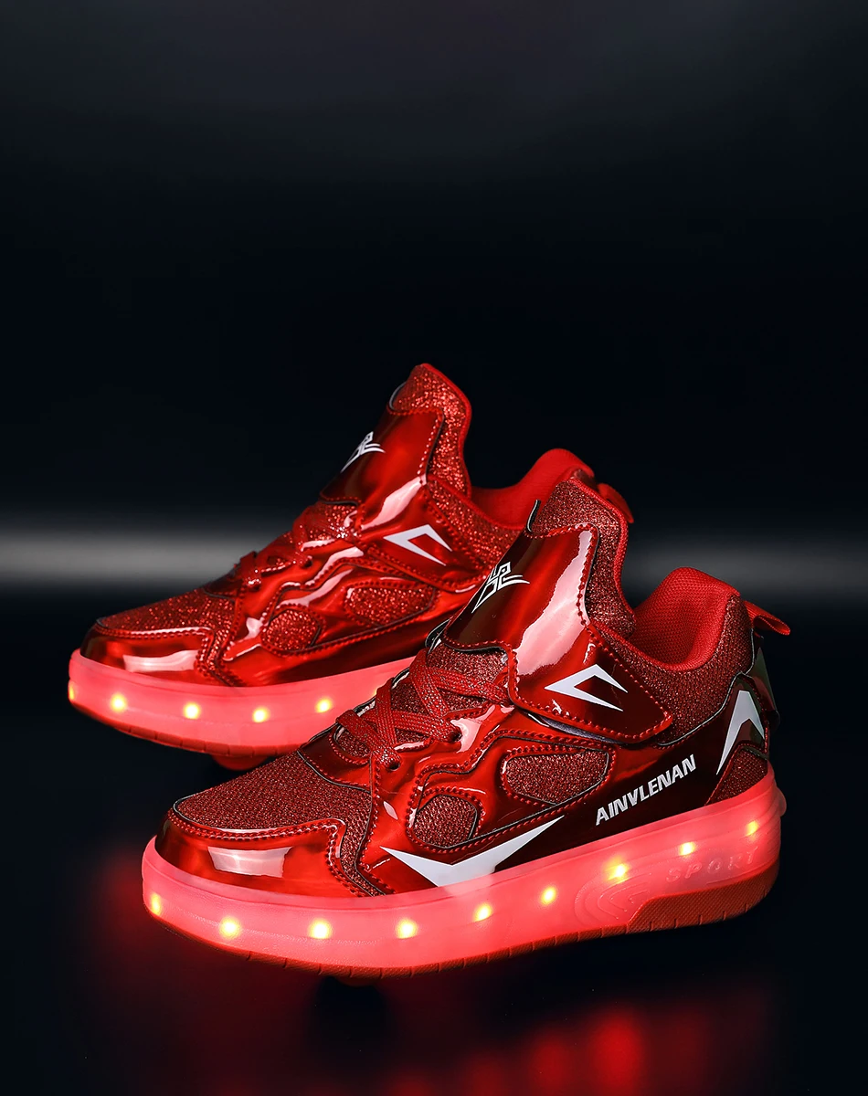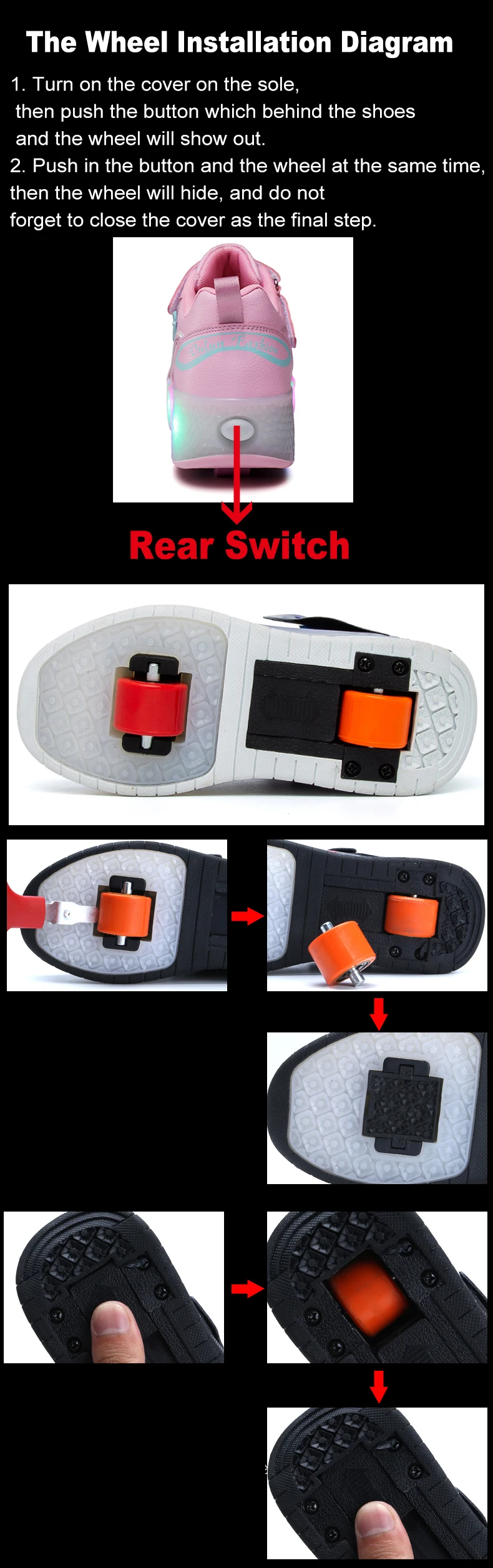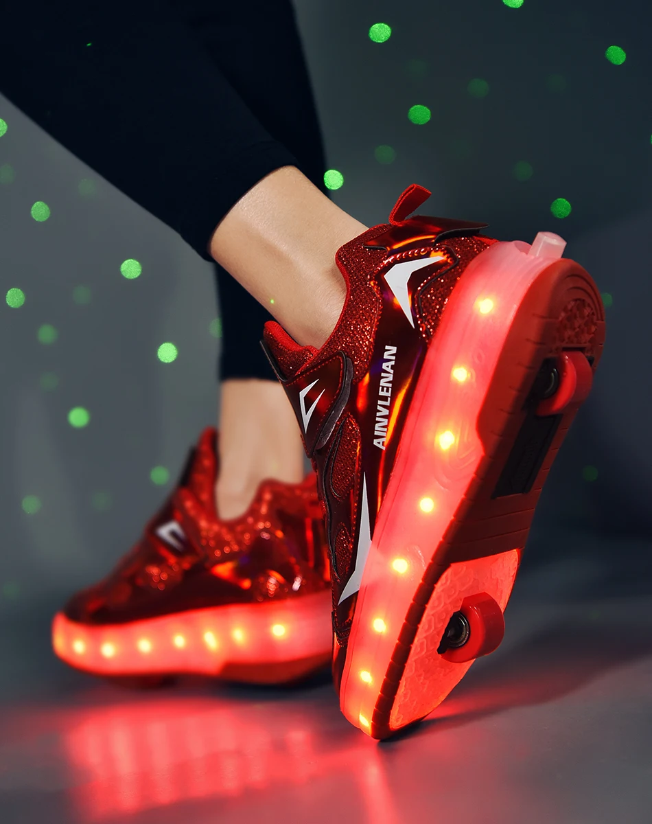 Детей роликовых коньках обувь со светодиодной подсветкой для детей с двумя колесами, светящиеся кроссовки для мальчиков и девочек обувь, зарядка через USB со светодиодной подсветкой Размеры 28-40