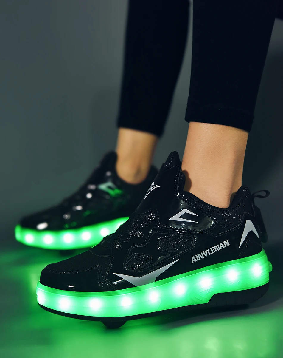 Детская обувь для катания на роликах со светодиодной подсветкой, Детские светящиеся кроссовки с двумя колесами, обувь для мальчиков и девочек с usb-зарядкой, размер 28-40