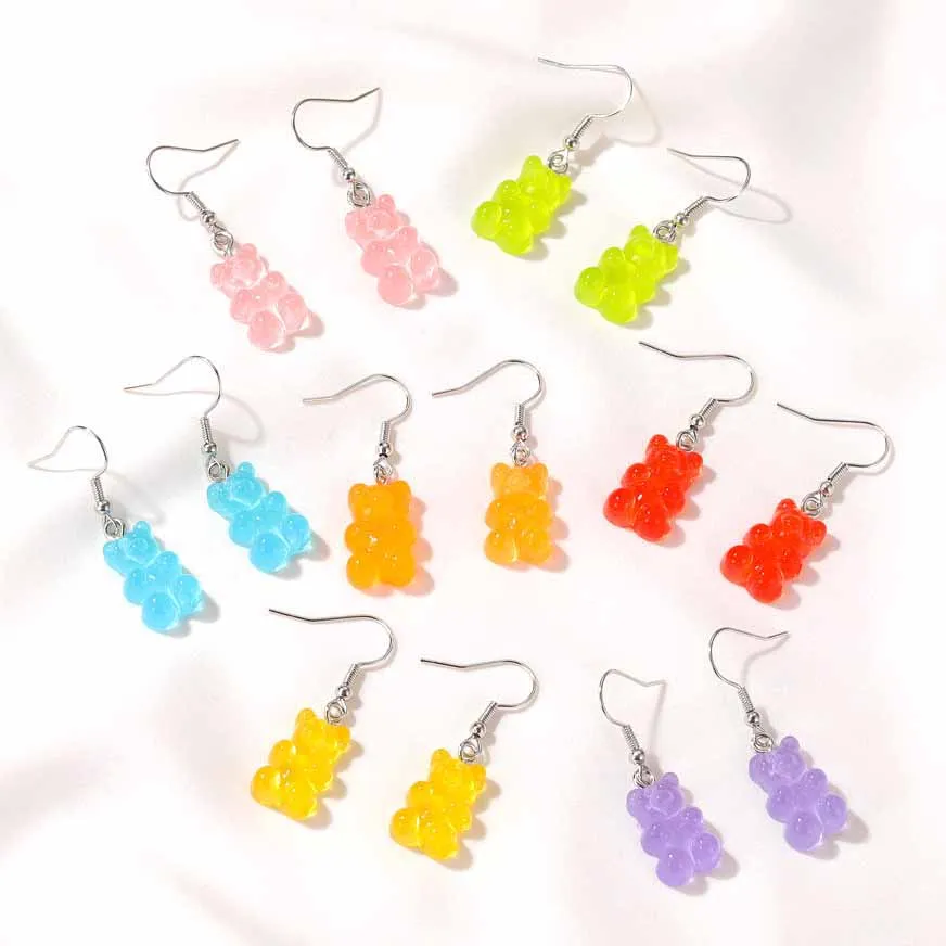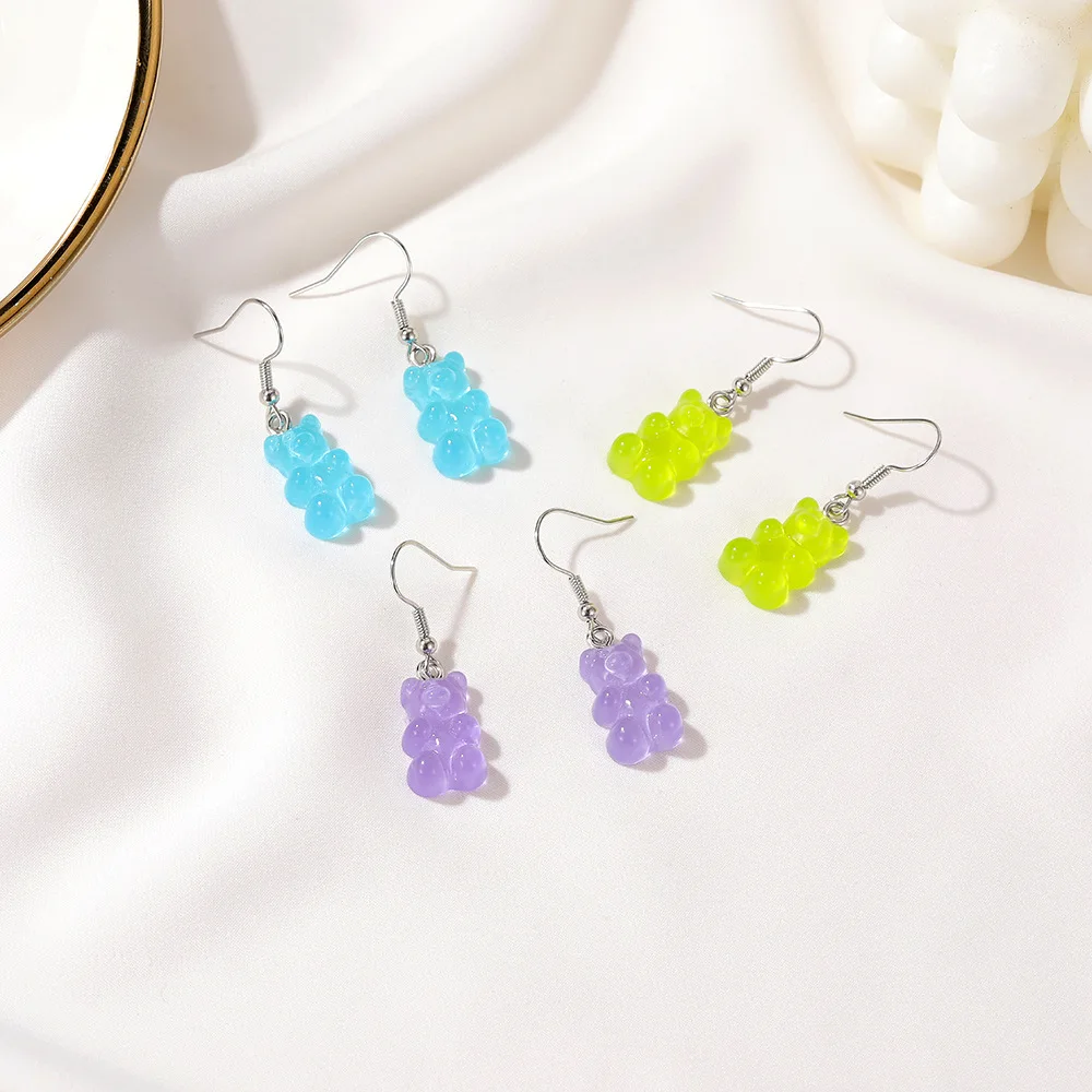 Новинка, модные висячие серьги с блестками и медведем из смолы для женщин и девушек, разноцветные акриловые серьги сделай сам с мультяшными животными, ювелирные изделия 2022