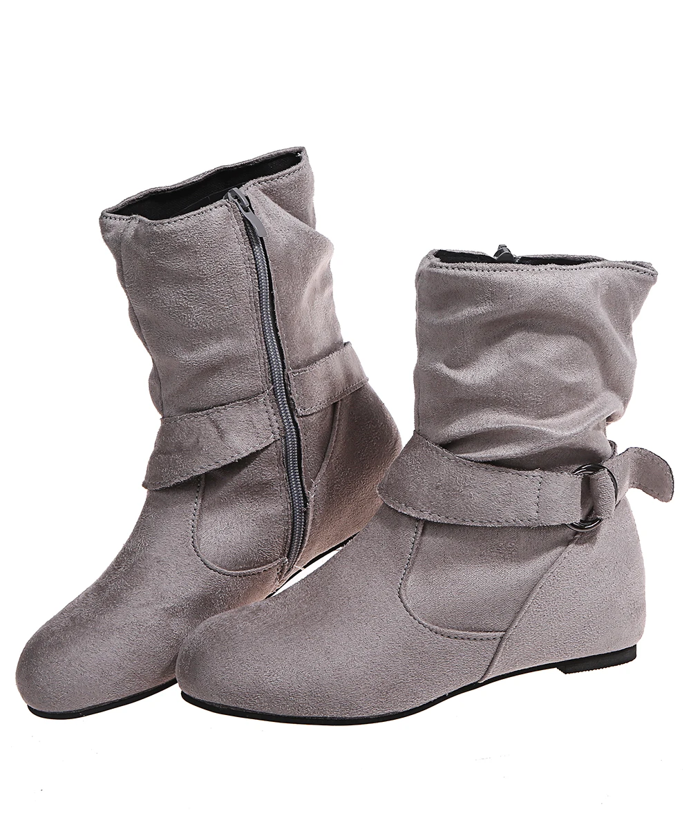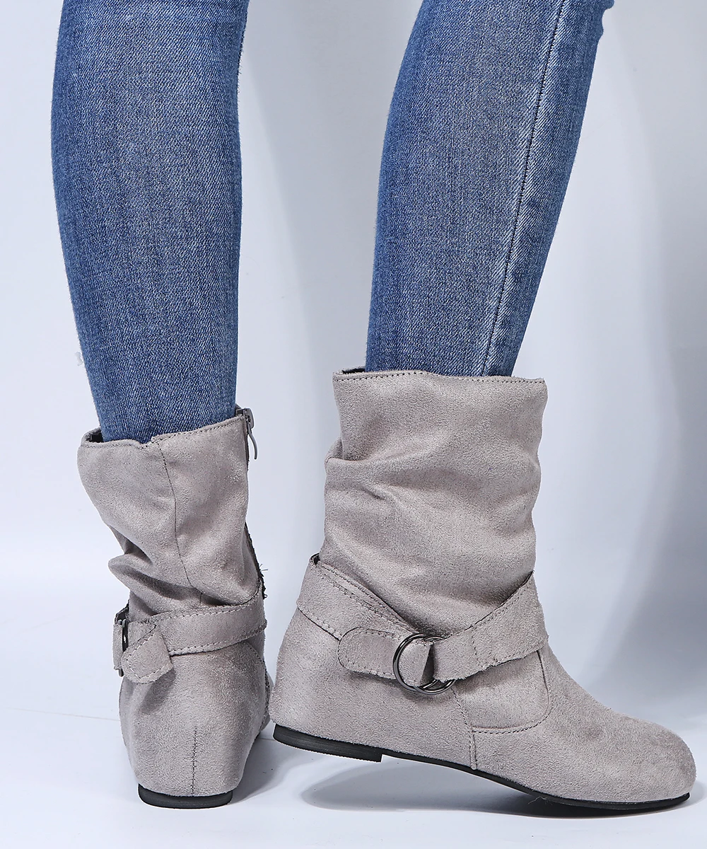 Зимние ботильоны на плоской подошве 2021, пикантные ботинки, женские замшевые ботинки с боковой молнией и пряжкой, женские ботинки, женские зимние ботинки
