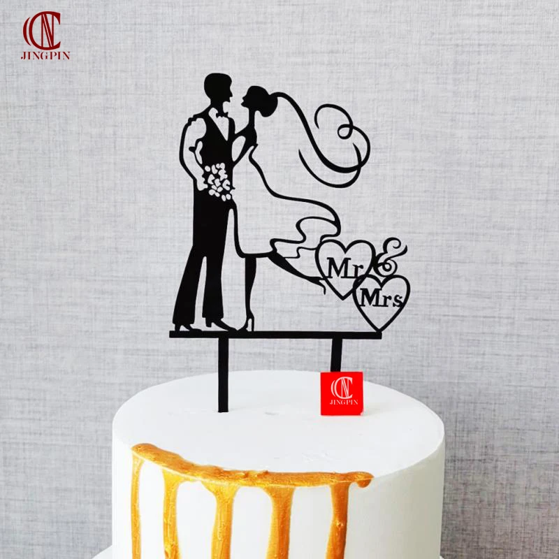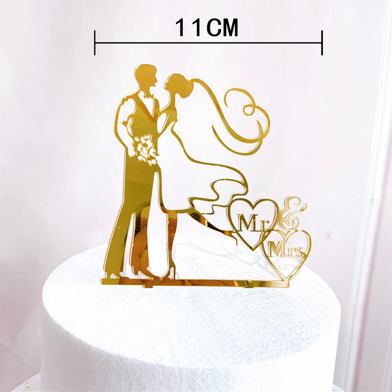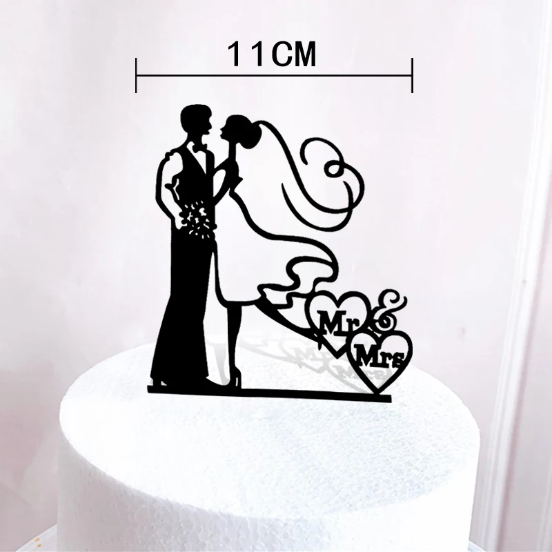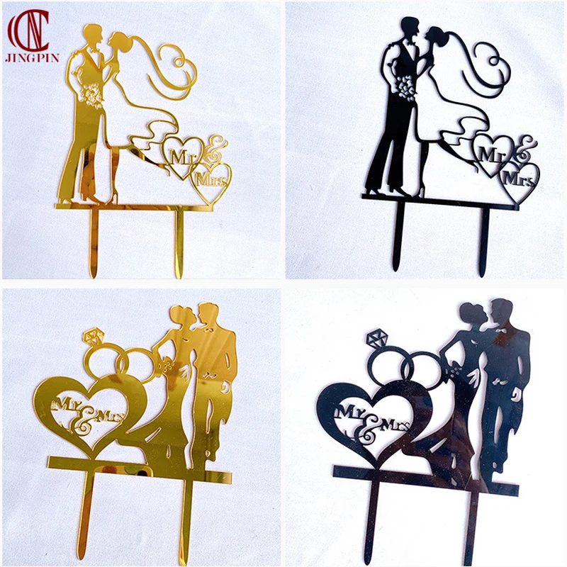 Золотые медиаторы Mr Mrs, топпер для торта, Свадебная пара, акриловые черные сердца, украшение для свадебного кекса, украшение для торта на годовщину вечерние вечеринку, выпечки