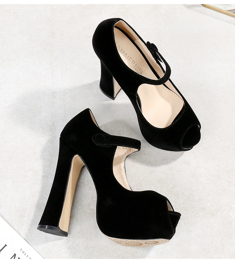 Туфли-лодочки женские, открытый носок, платформа, высокий каблук 14 см, пикантные, однотонные