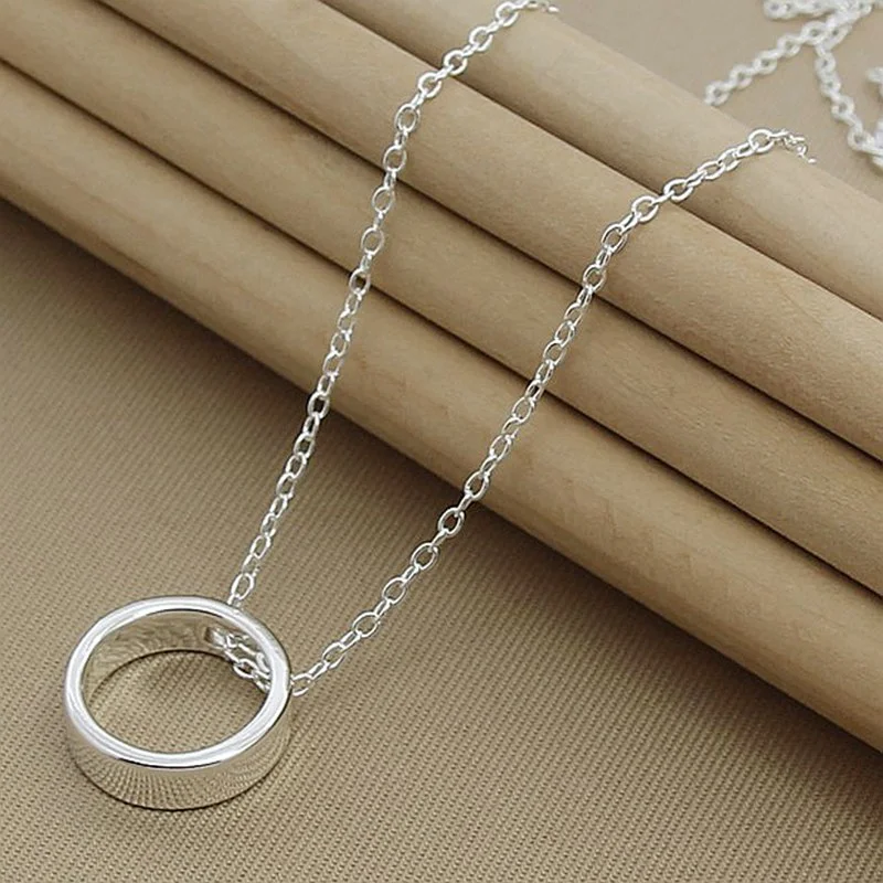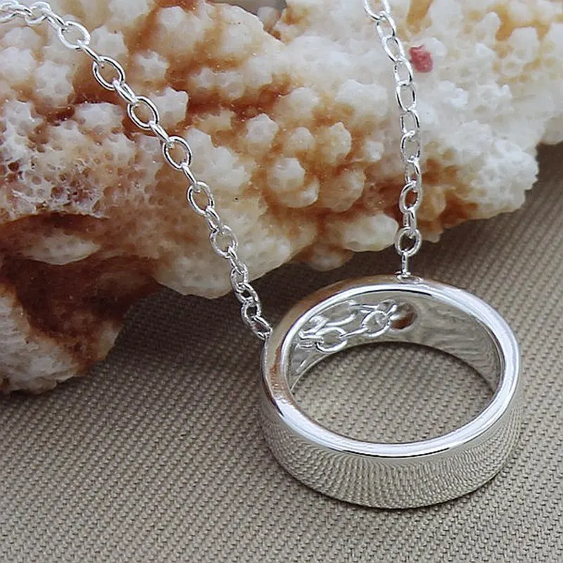 Ожерелье с круглой подвеской, серебро 925 пробы
