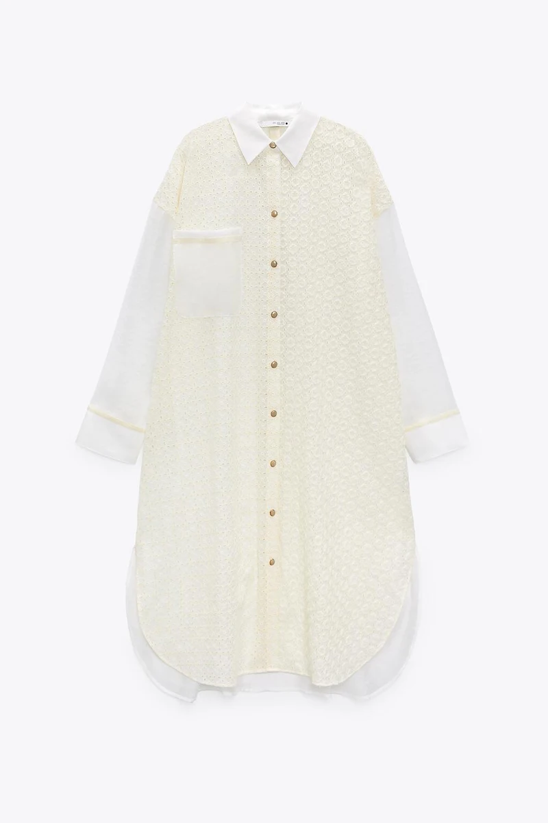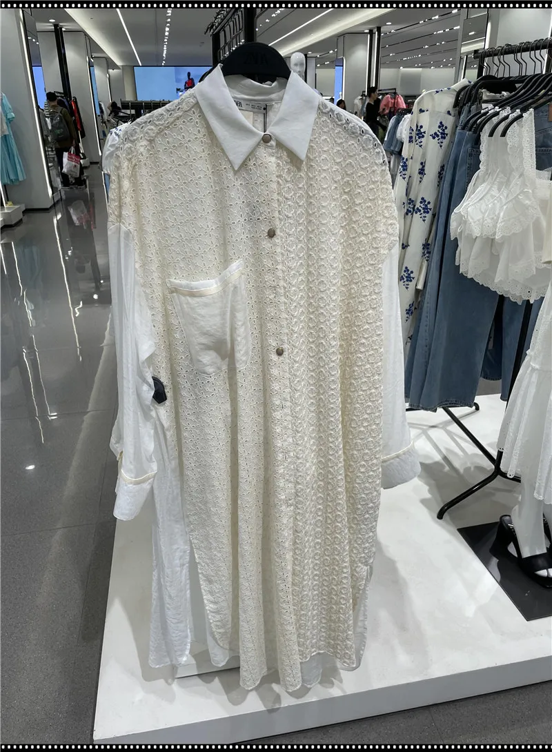 Новинка Za, женские платья с вышивкой и вырезами, женское белое Сетчатое платье, элегантные летние платья 2021, приталенное платье миди с длинным рукавом