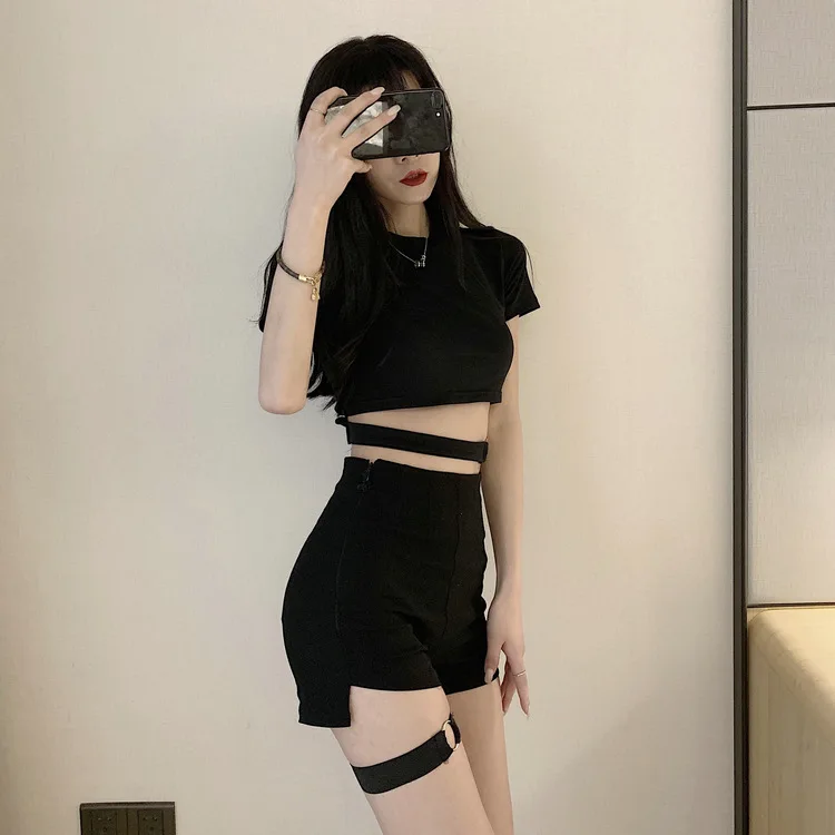 Летняя крутая Юбка со съемным разрезом и высокой талией, Женская нестандартная клетчатая юбка, яркие черные шорты с петлей для ног