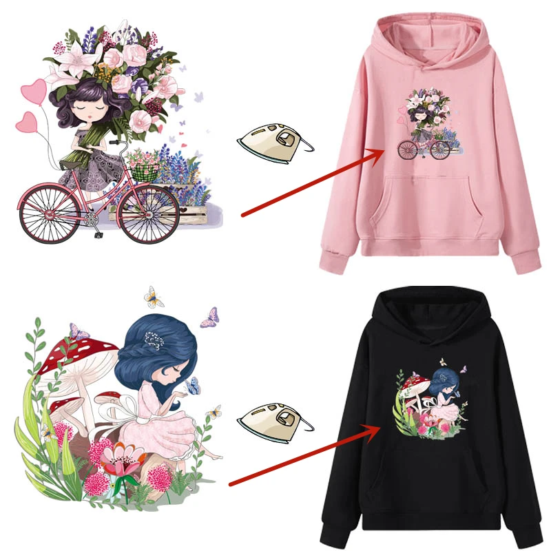 Бесплатная доставка, Мультяшные наклейки с единорогом и балериной девушкой, термонаклейки для одежды, термонаклейки для детей
